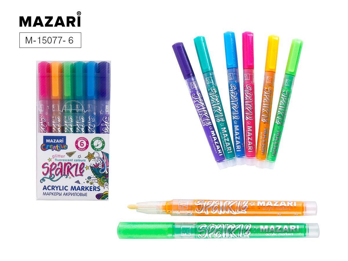 Набор акриловых маркеров-красок «Sparkle» 6 цветов с блёстками, пулевидный наконечник 1.0-2.0 мм, ПВХ-упаковка