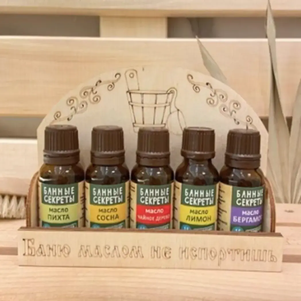 - Эстетичный дизайн: масла представлены в стильной деревянной подставке, которая украсит любой интерьер.