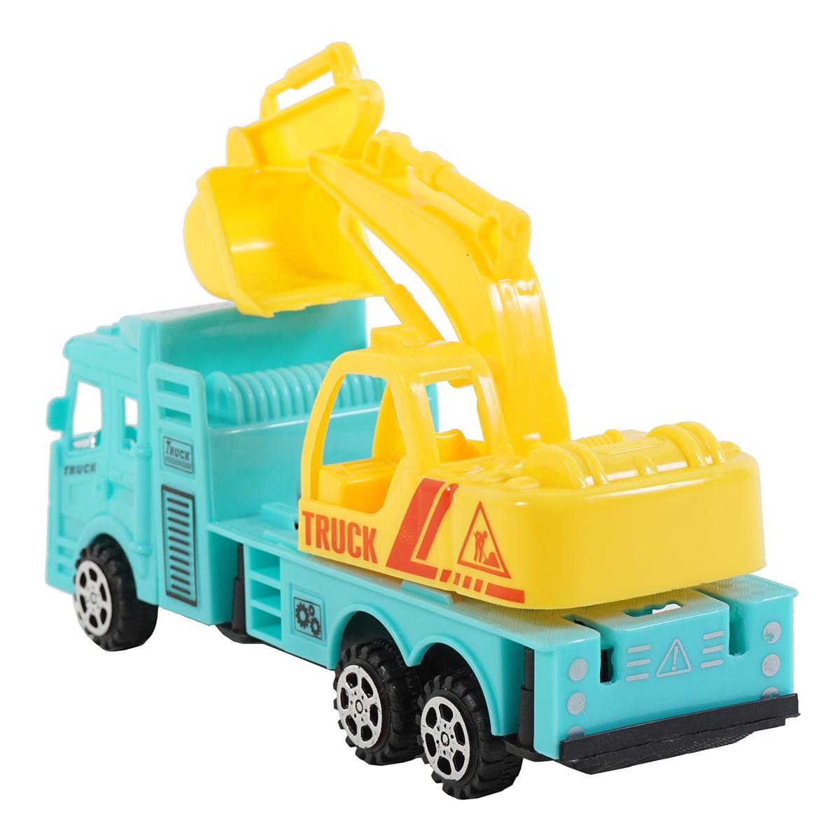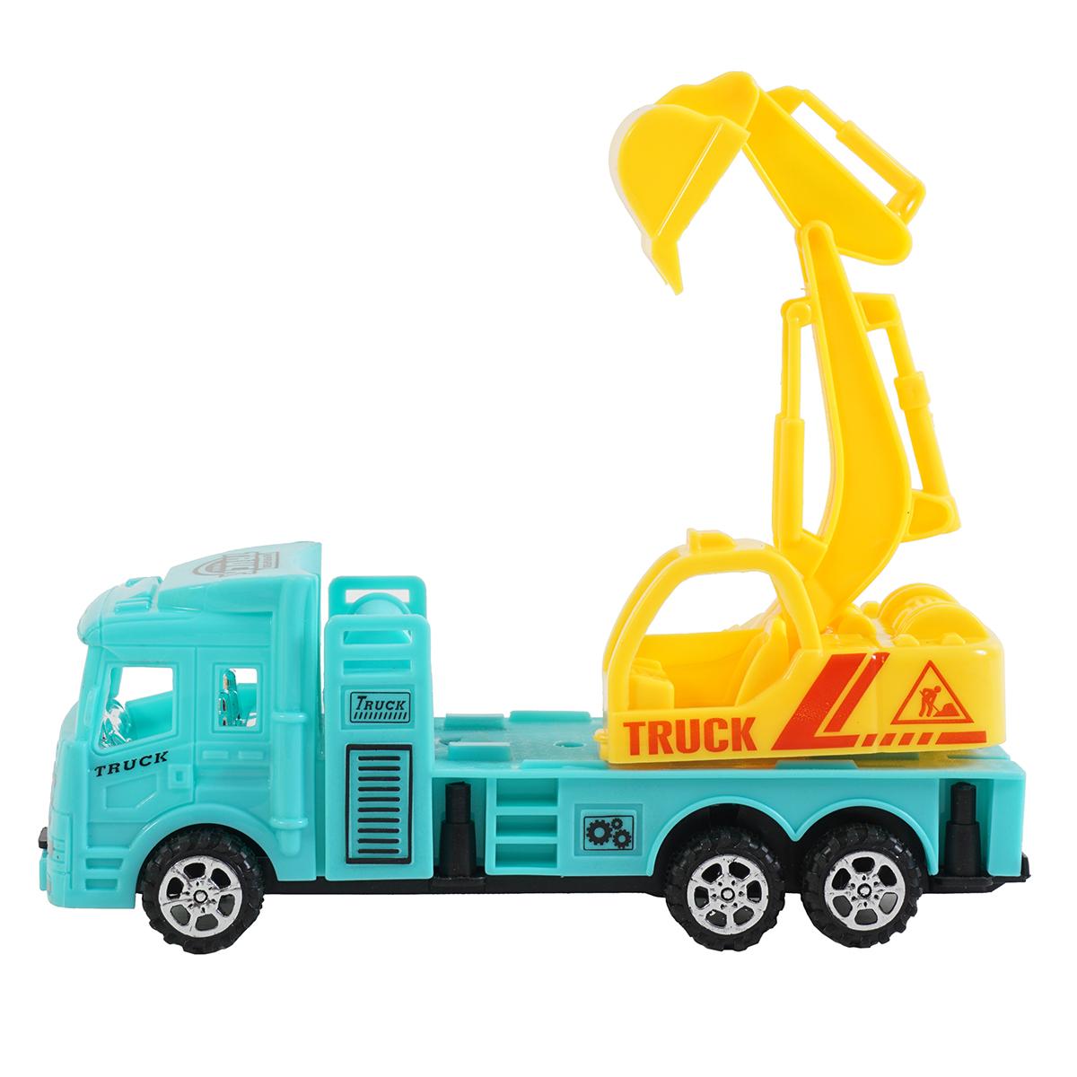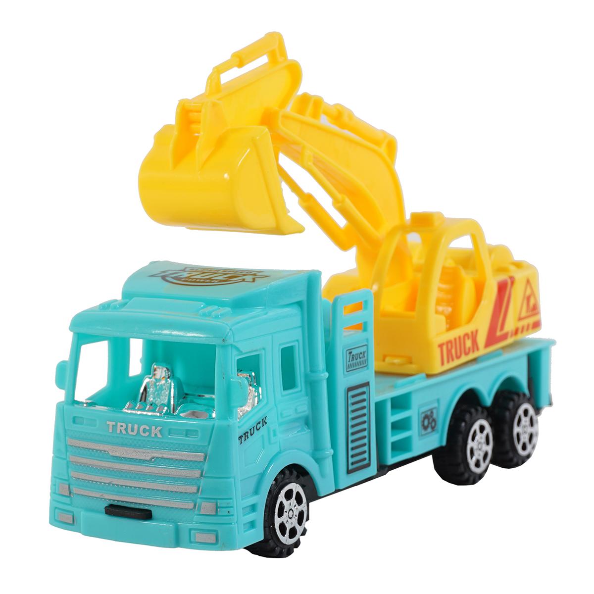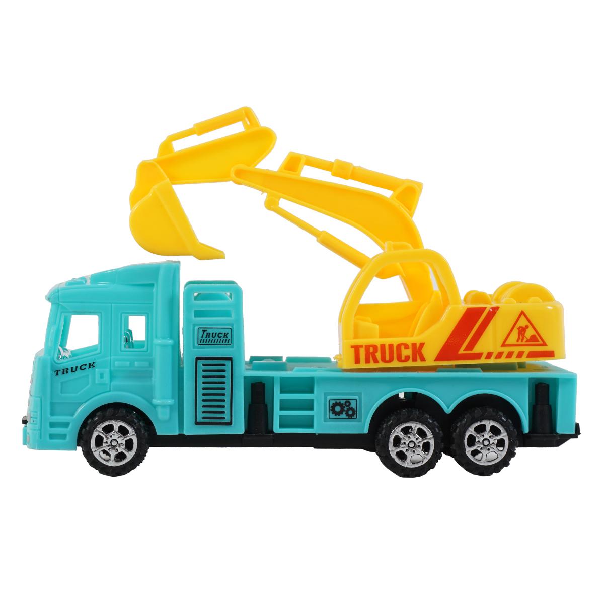 - Голубой грузовик со строительным ковшом