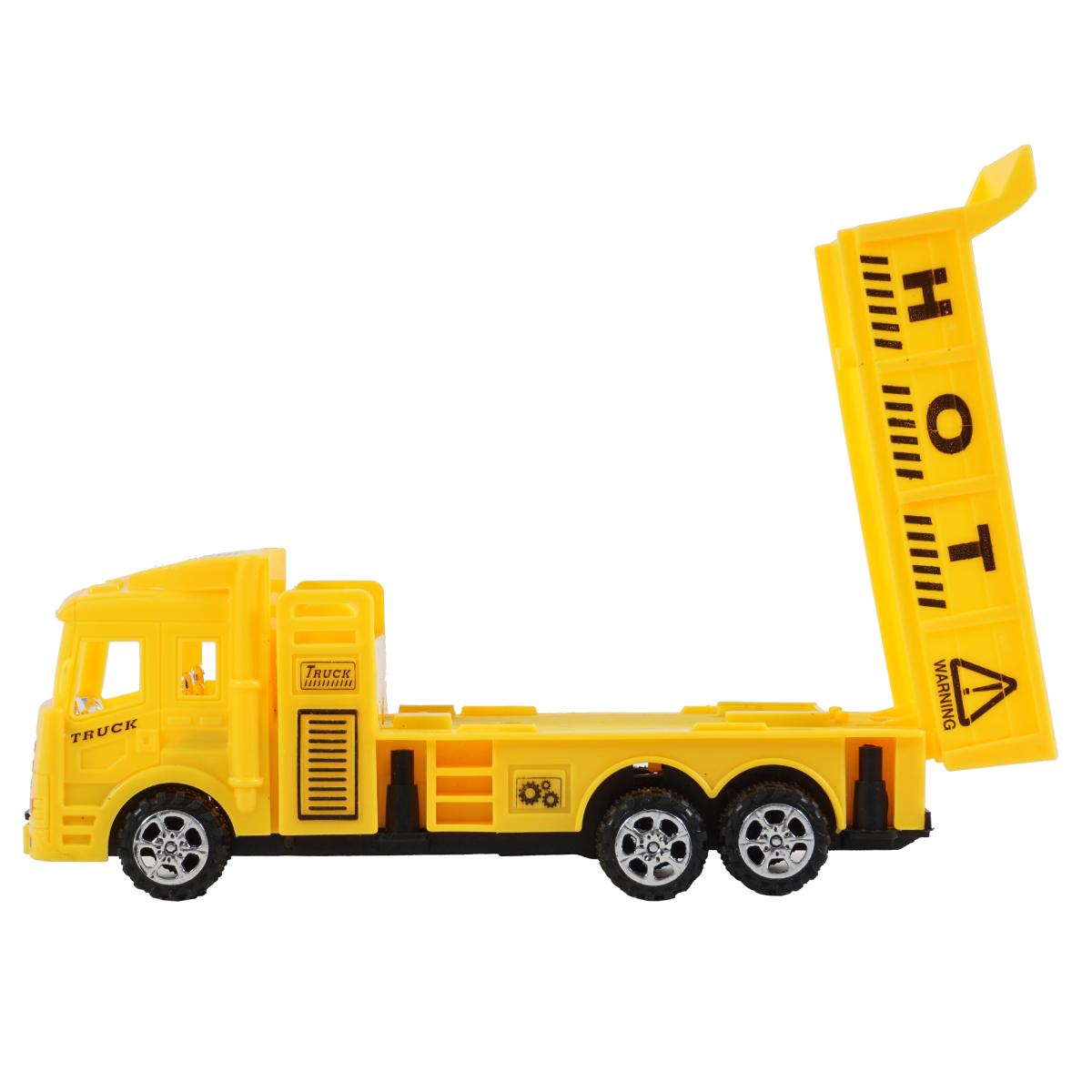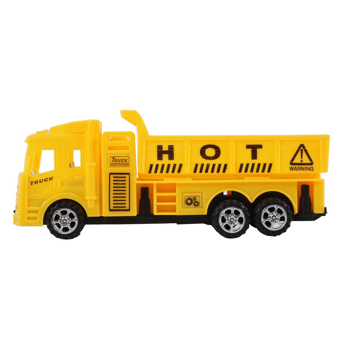- Желтый грузовик с надписью "HOT" и предупреждающим знаком