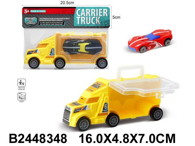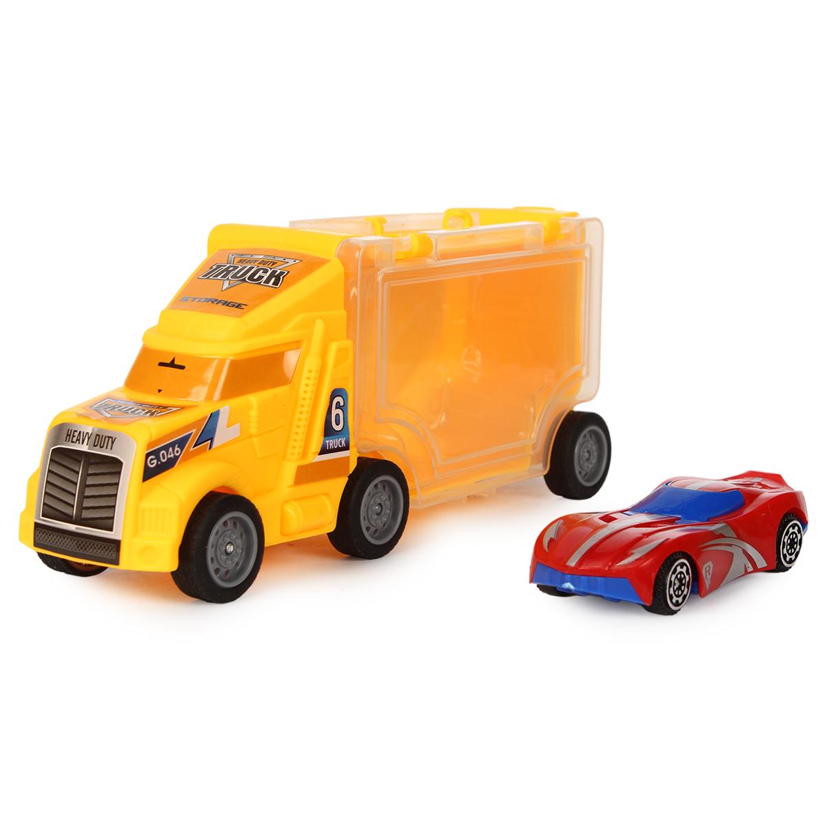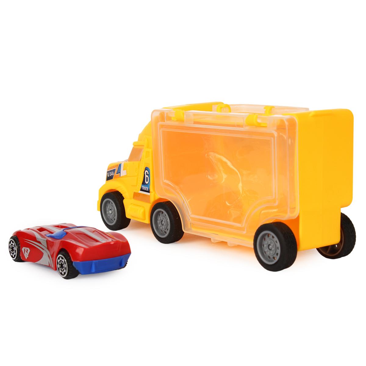 Набор машинок с грузовиком-контейнером, желтый и красный, пластик, 16x4,8x7 см