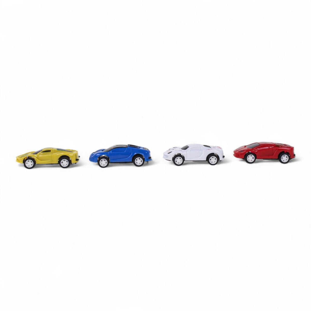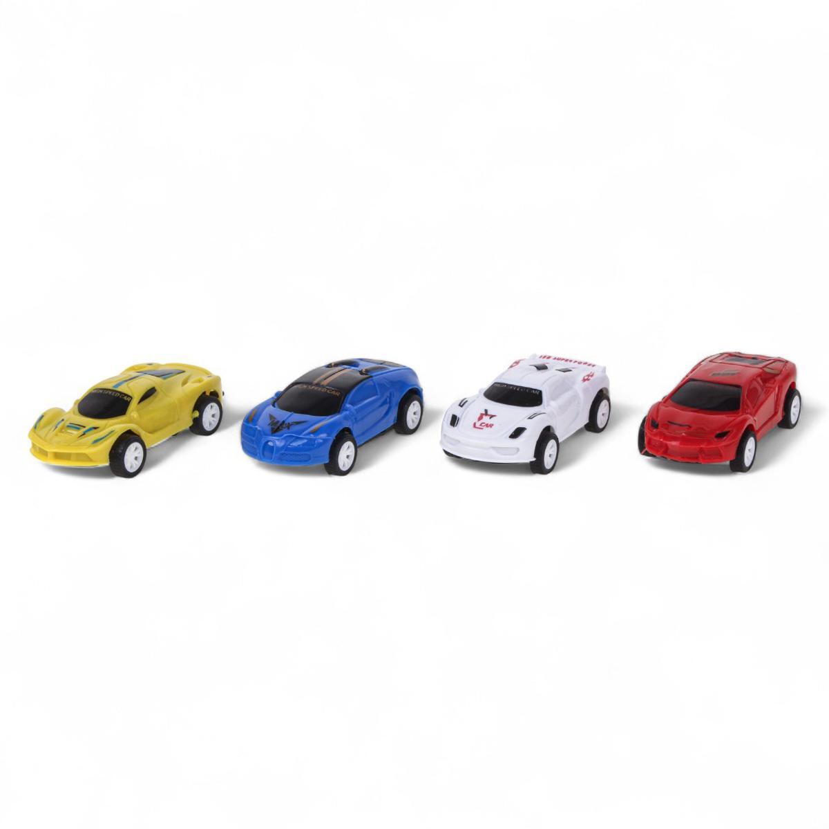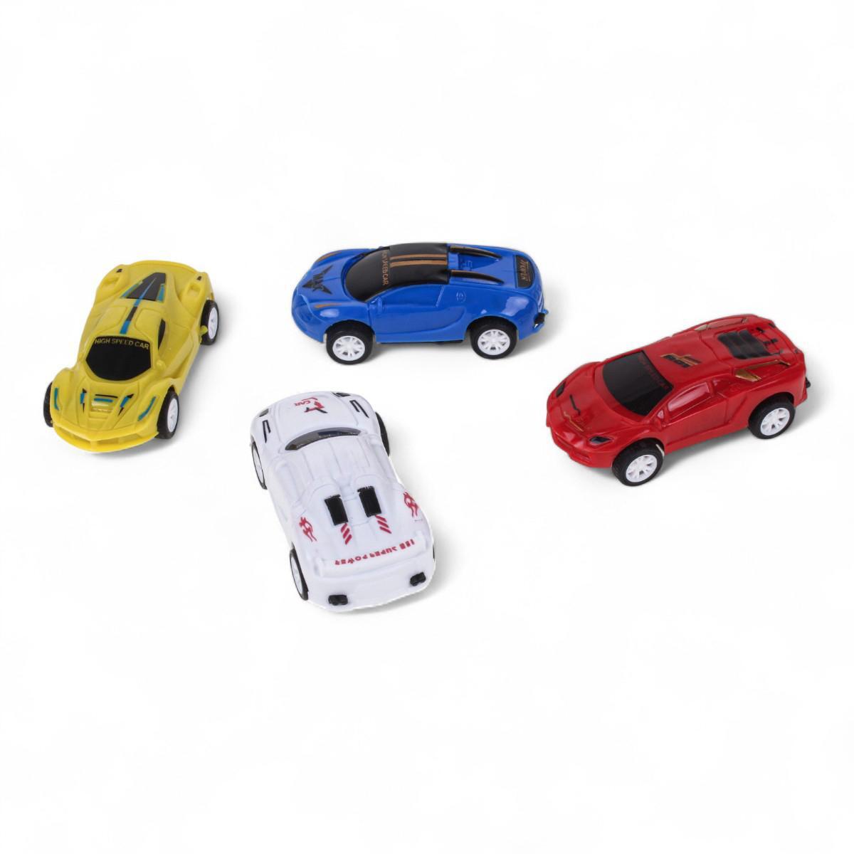 Этот компактный набор включает четыре игрушечных автомобиля с динамичным спортивным дизайном. Разные цвета – жёлтый, красный, белый и синий – делают каждую игру уникальной и увлекательной. Машинки выполнены из прочного пластика, что обеспечивает долговечность и устойчивость к повреждениям. Идеальны для детских гонок и сценарных игр.