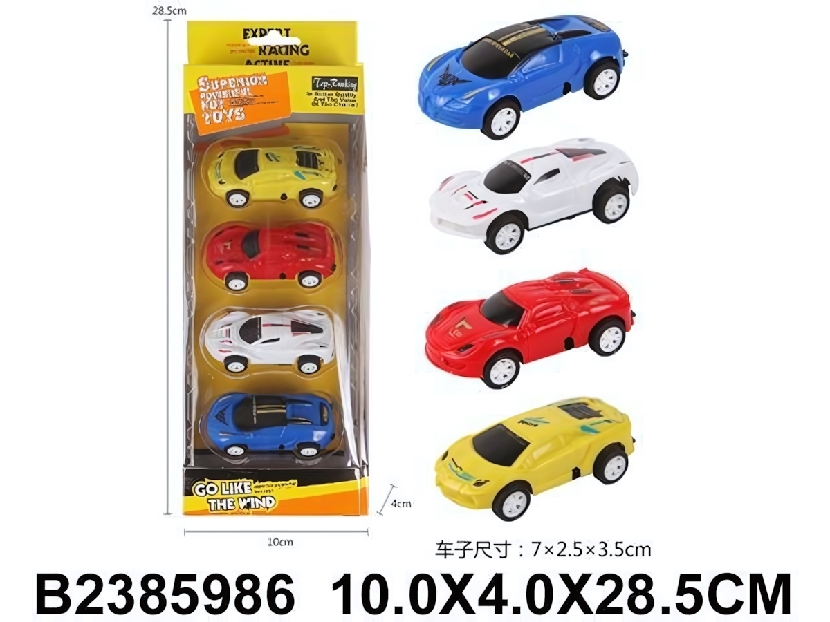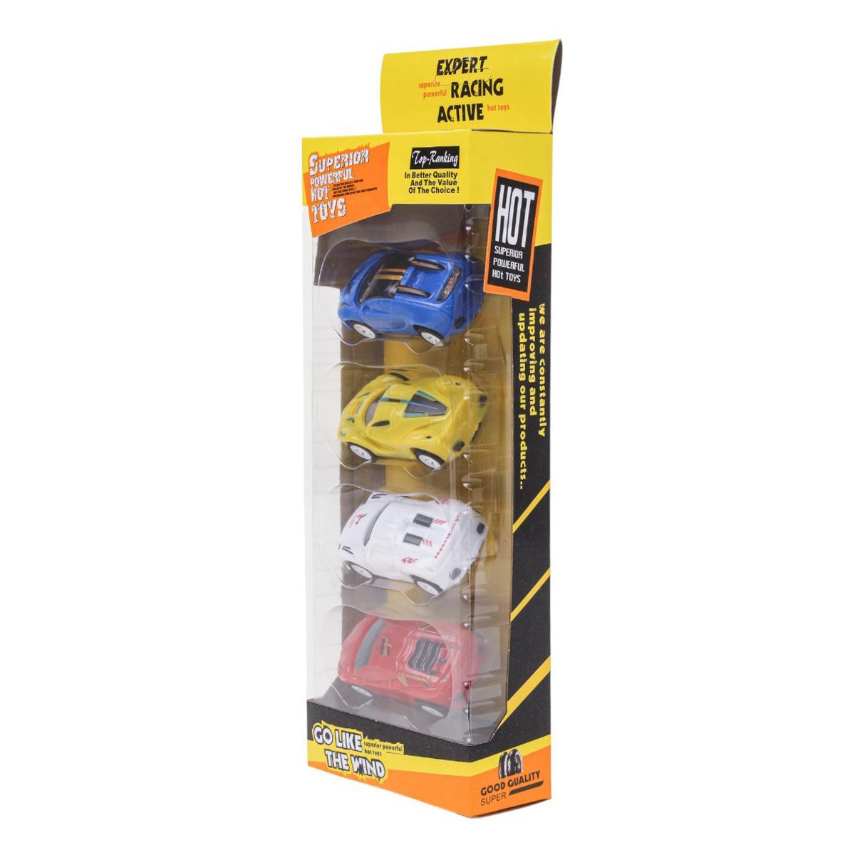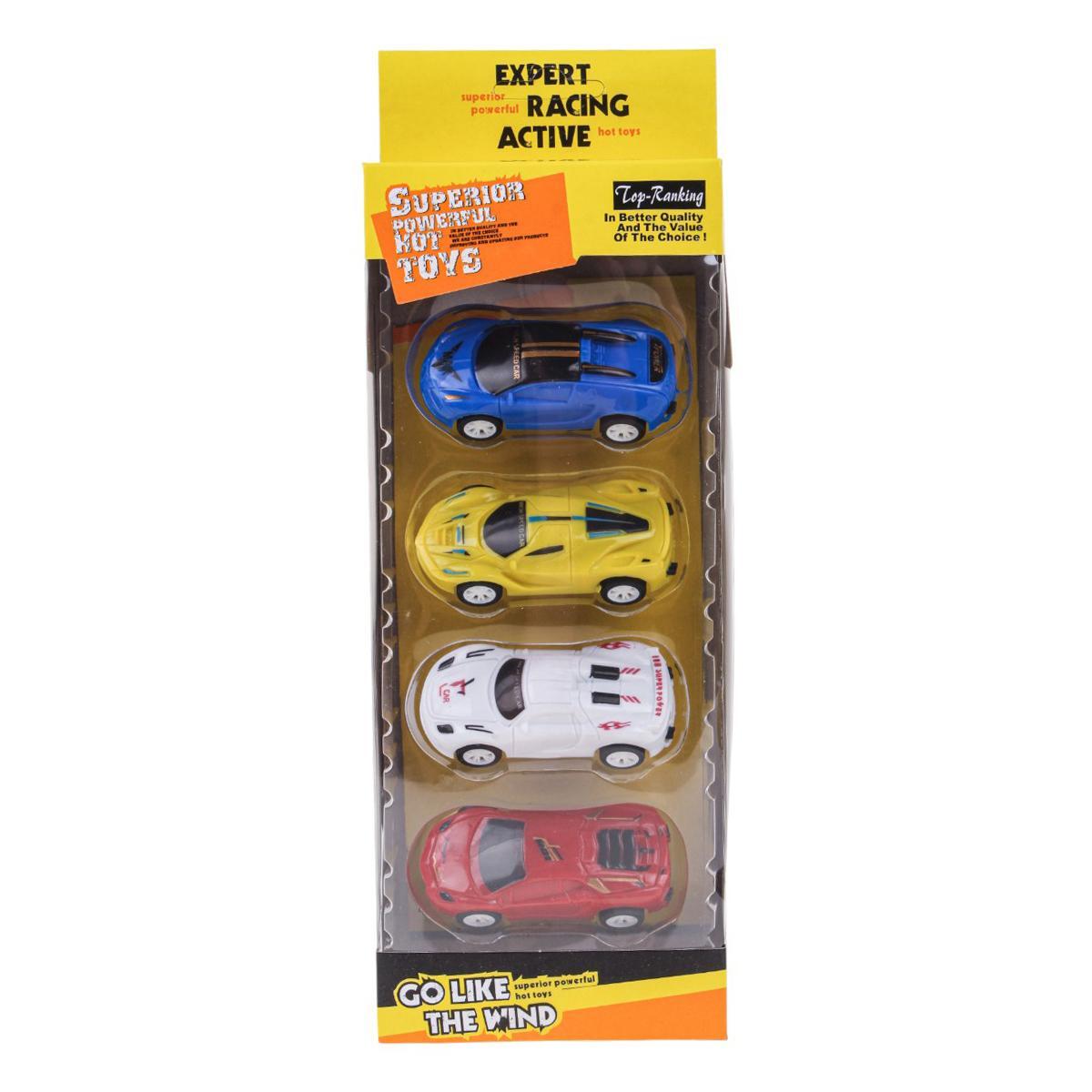 Этот компактный набор включает четыре игрушечных автомобиля с динамичным спортивным дизайном. Разные цвета – жёлтый, красный, белый и синий – делают каждую игру уникальной и увлекательной. Машинки выполнены из прочного пластика, что обеспечивает долговечность и устойчивость к повреждениям. Идеальны для детских гонок и сценарных игр.