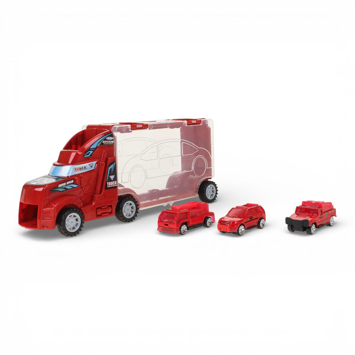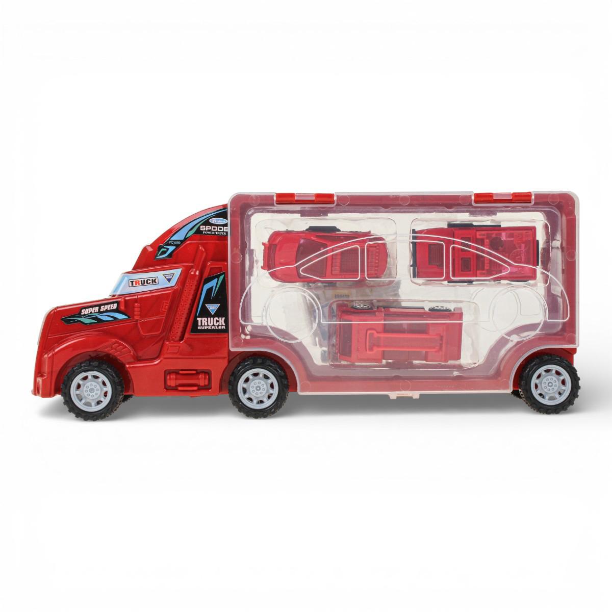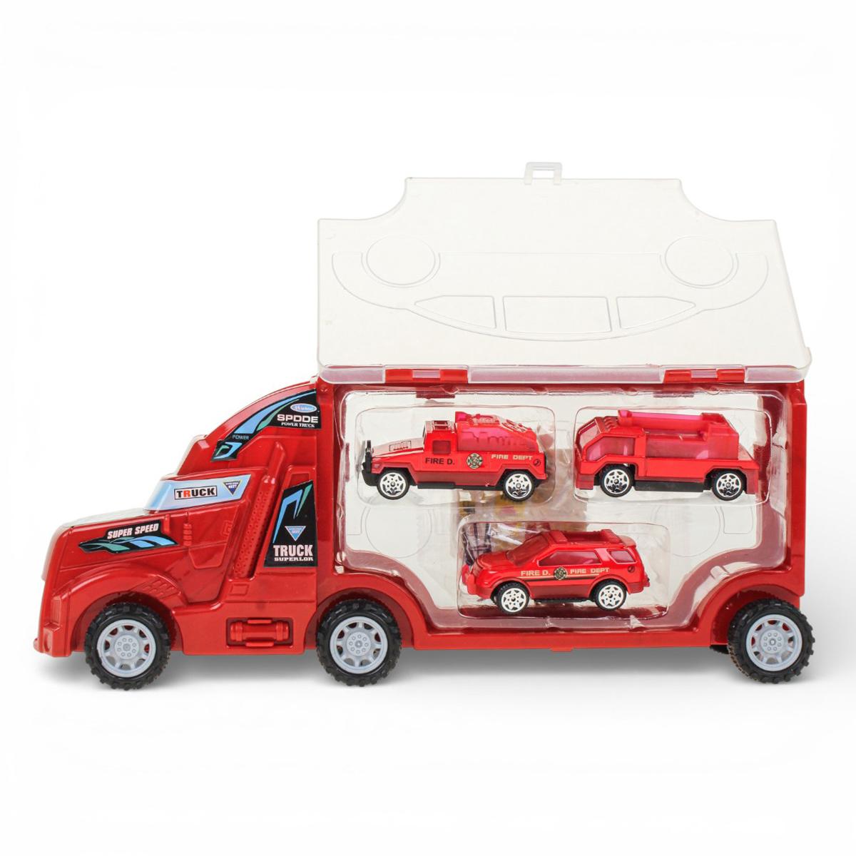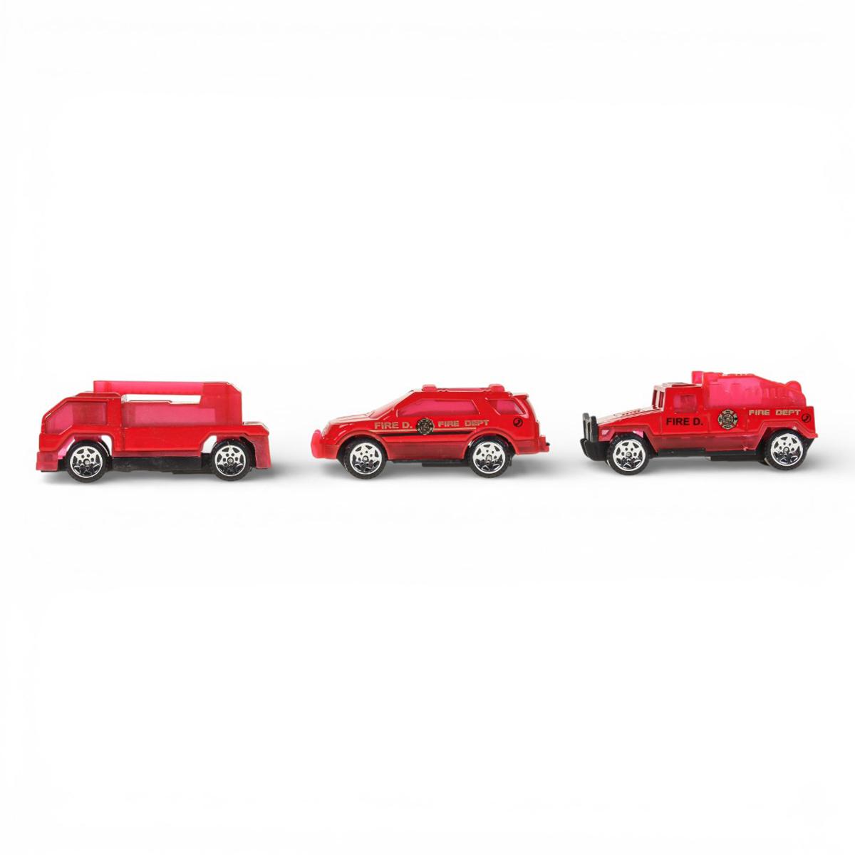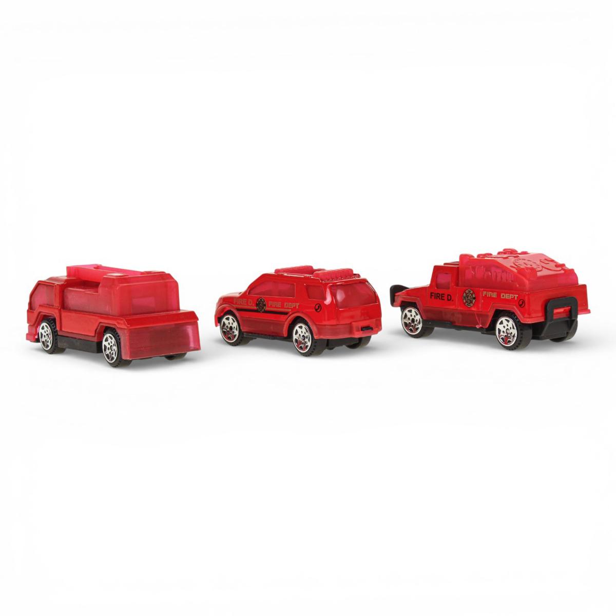 - Цветовая гамма: яркие, преимущественно красные оттенки транспортных средств, что делает игрушки привлекательными для ребёнка.