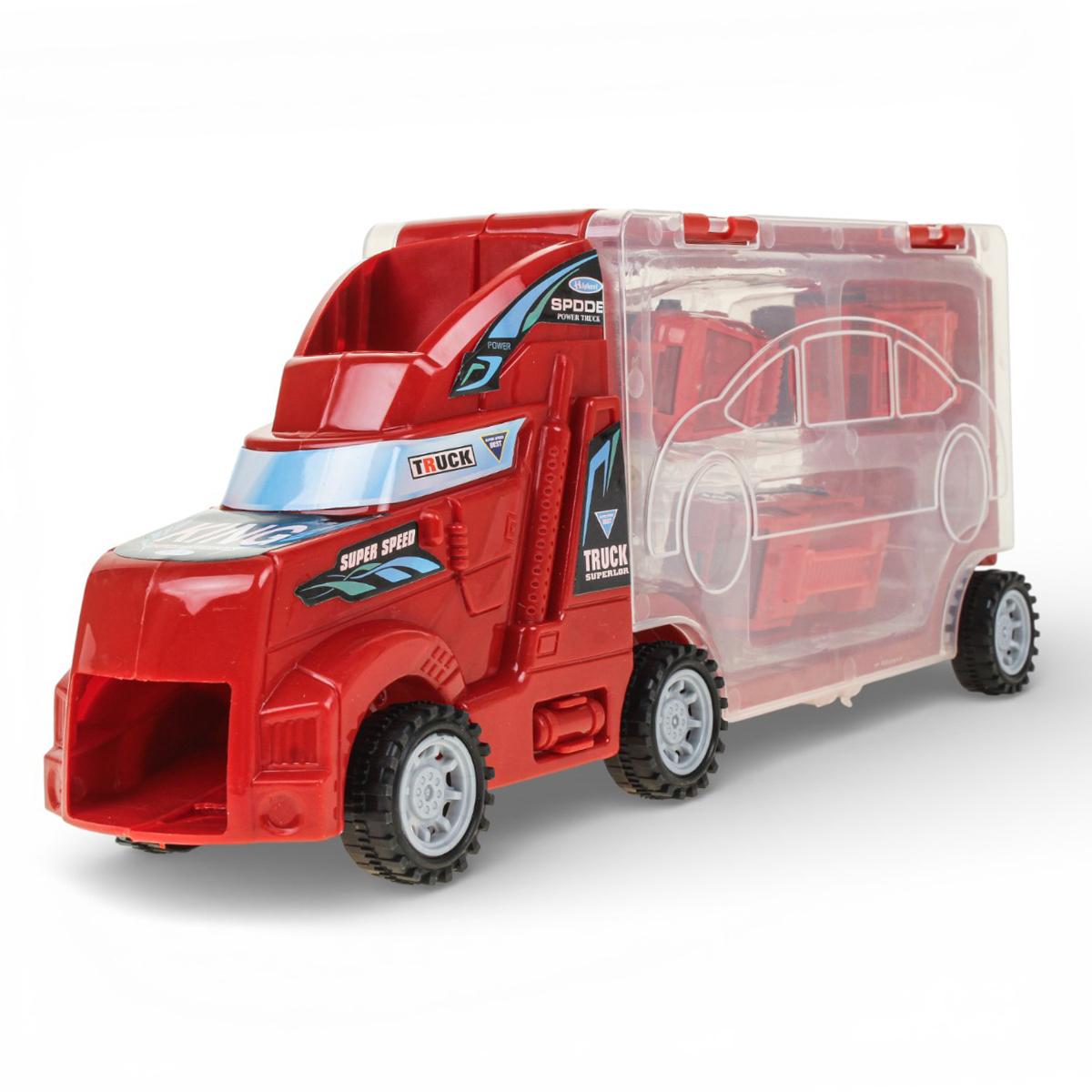 - Крупный грузовик с прозрачным контейнером-кузовом.