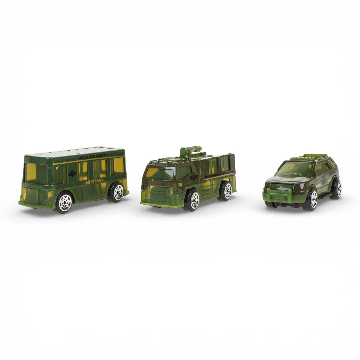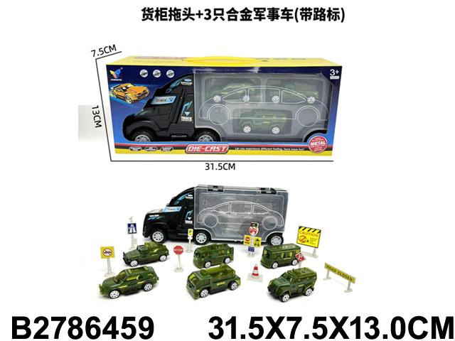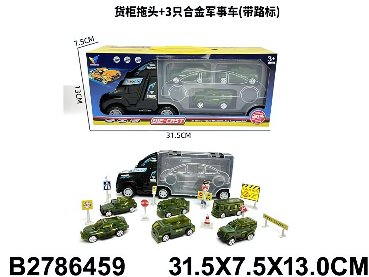 - Комплектация: 1 тягач с полуприцепом, 6 машинок, набор дорожных знаков и аксессуаров