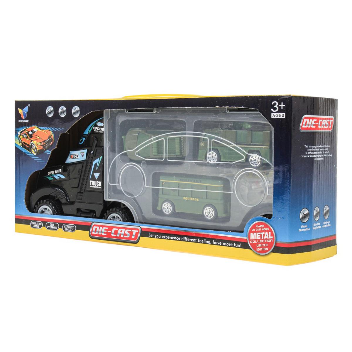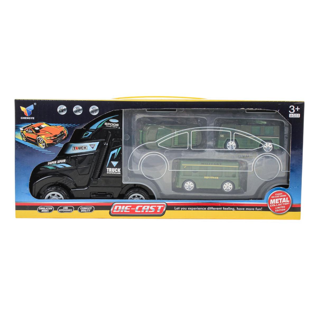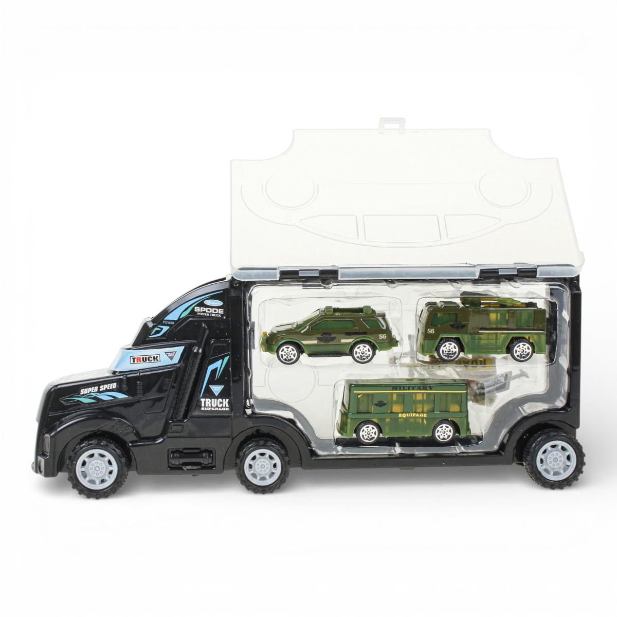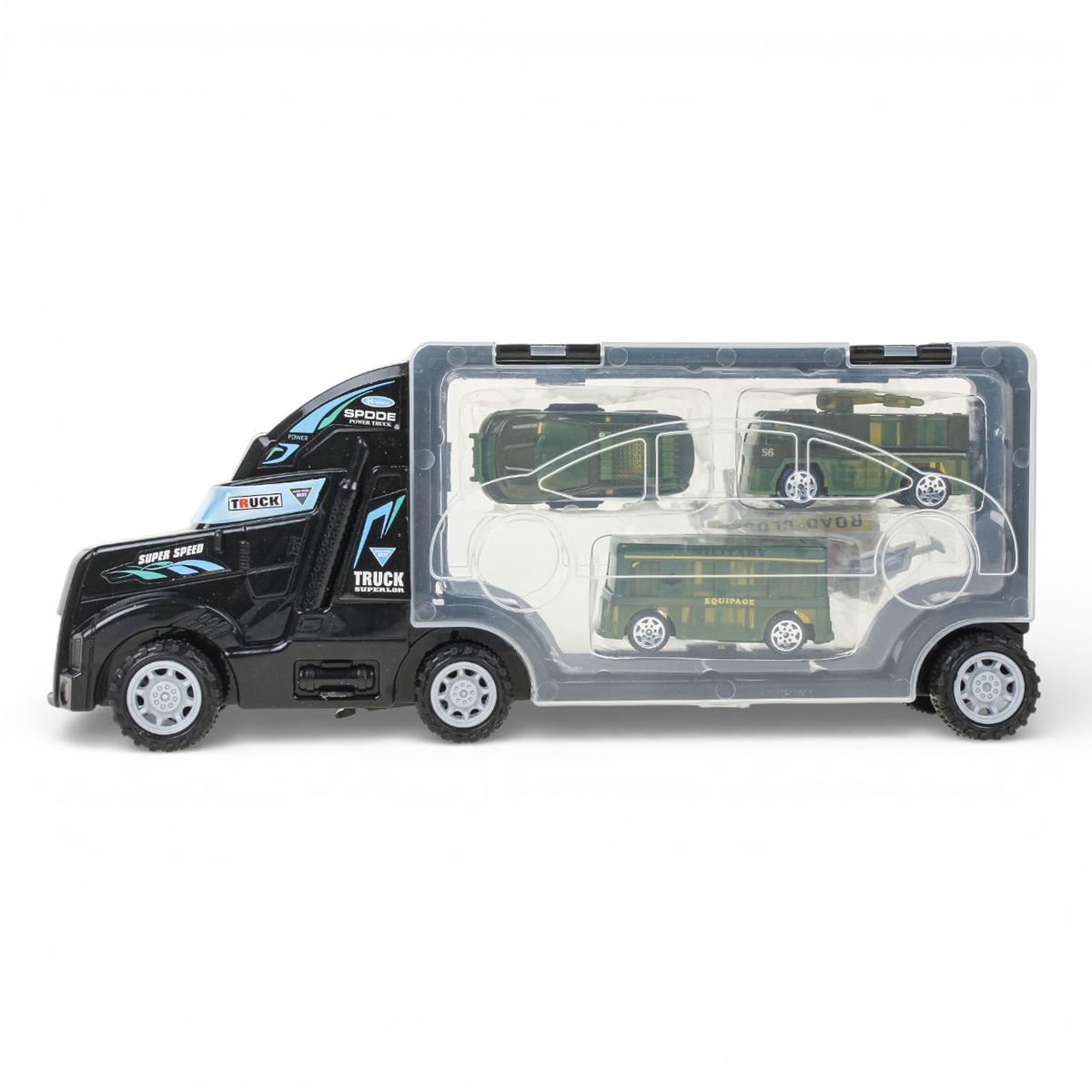 - Чёрный тягач с полуприцепом-автовозом (металлические детали)