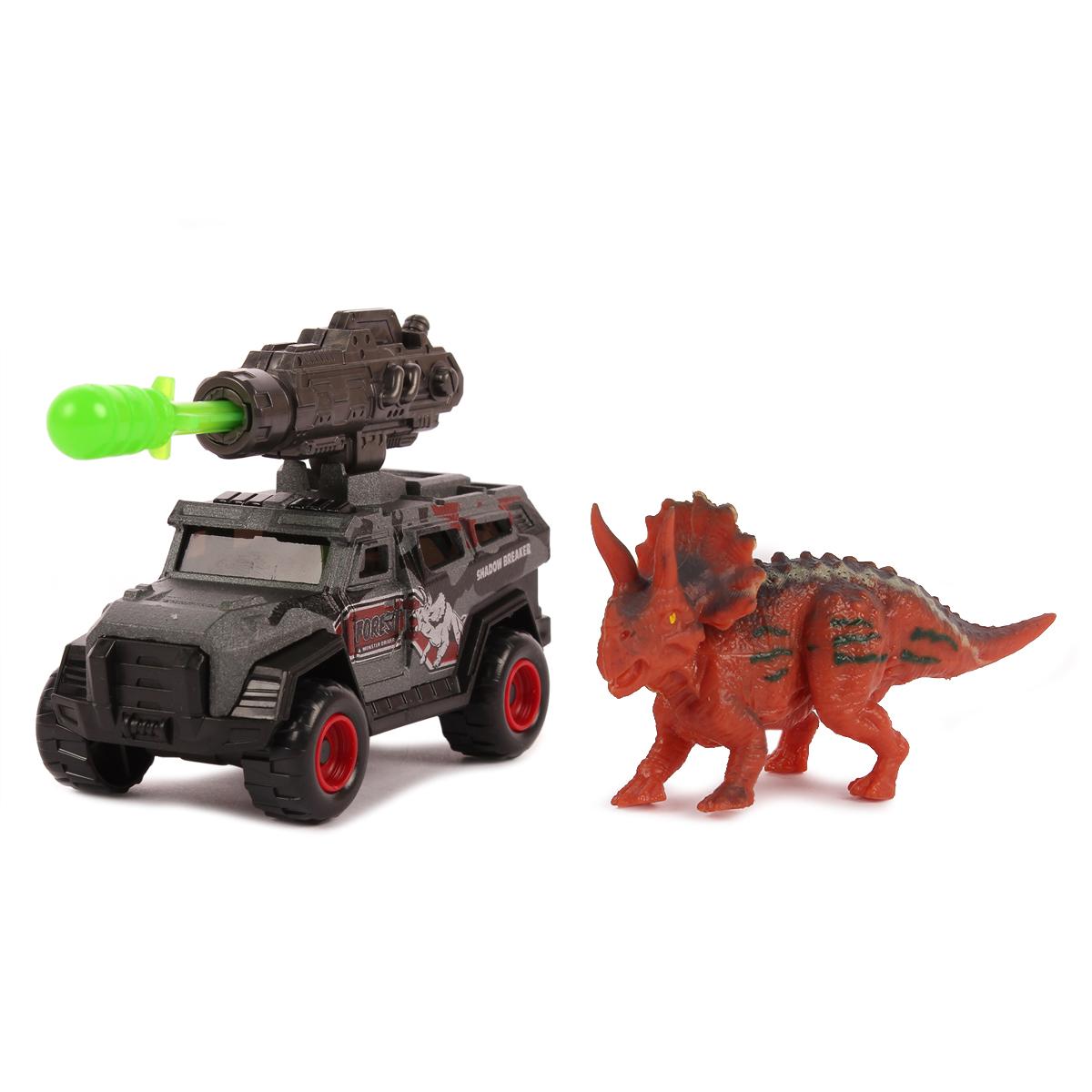 Погрузитесь в захватываственный мир приключений с этим набором игрушек, включающим модель внедорожника и фигурку динозавра. Идеально подходит для детей, любящих динамичные игры и фантазию.