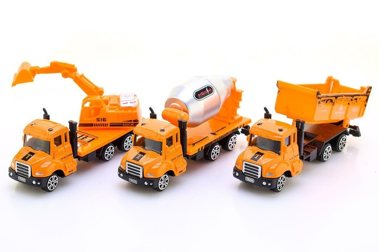 Набор машинок инерционных "Строители", 3 шт, металл/пластик, оранжевые