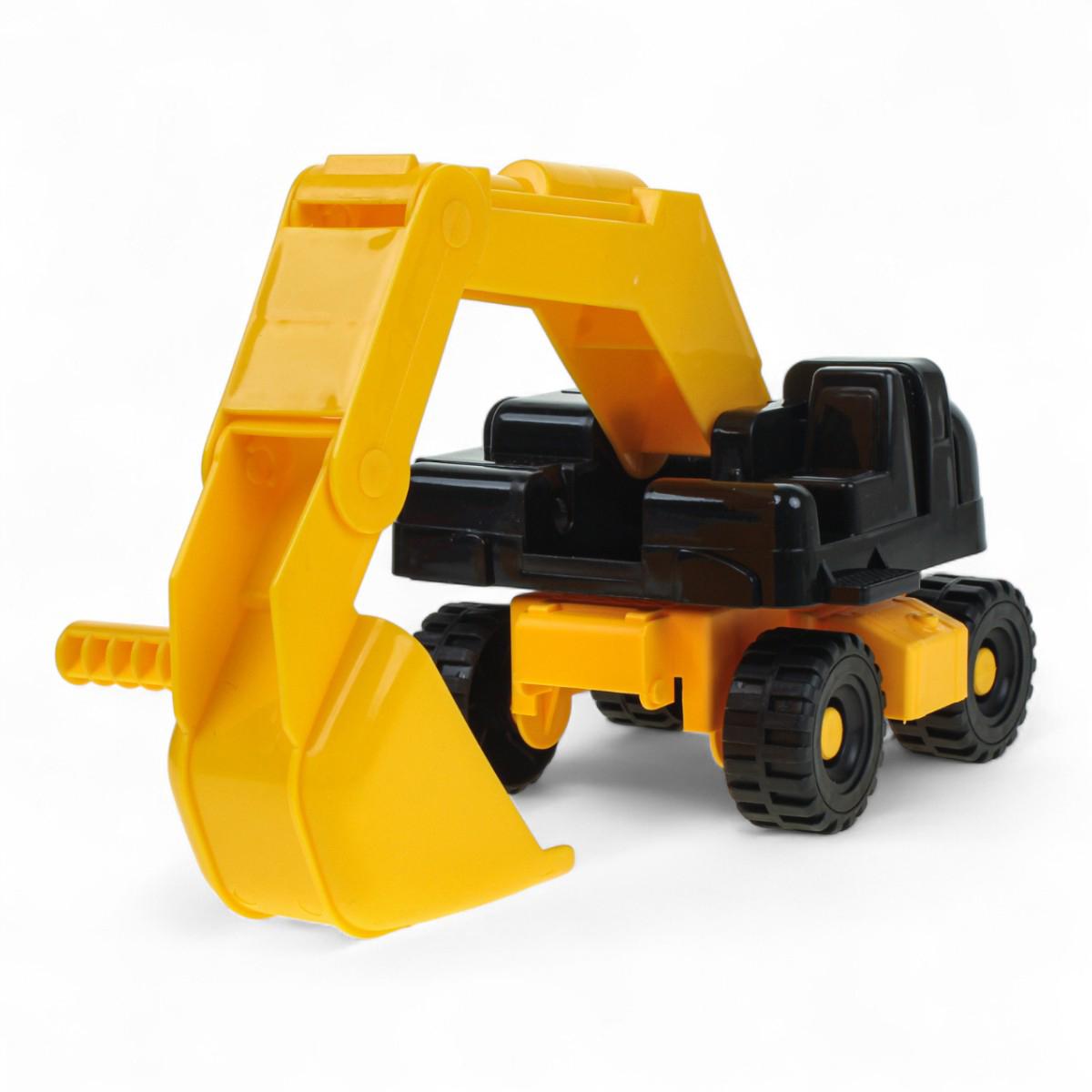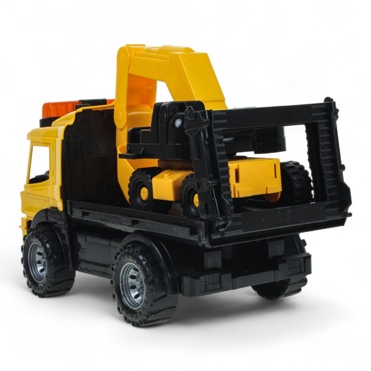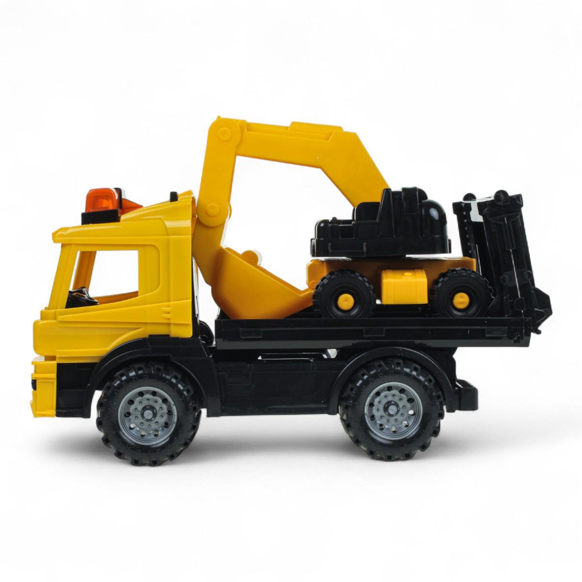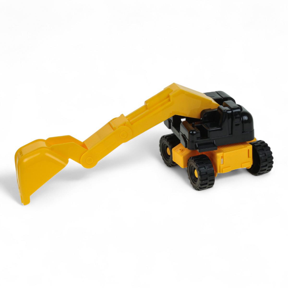 В комплект входят два полноценных транспортных средства: тягач и погрузчик. Колёса вращаются, а ковш погрузчика перемещается вверх и вниз, что позволяет моделировать рабочие сцены. Игрушки подходят для обыгрывания строительных сценариев на любой ровной поверхности и легко чистятся после игр.