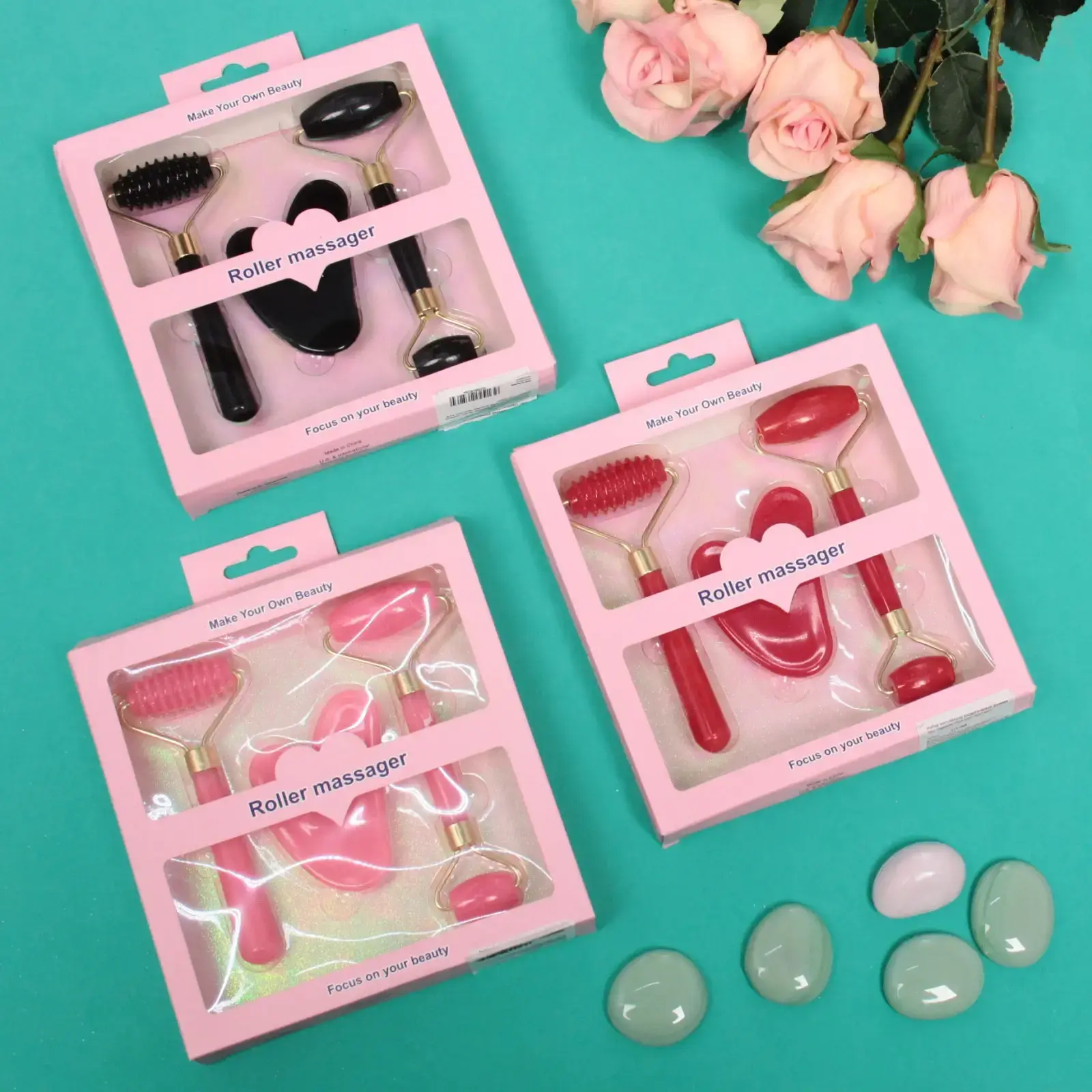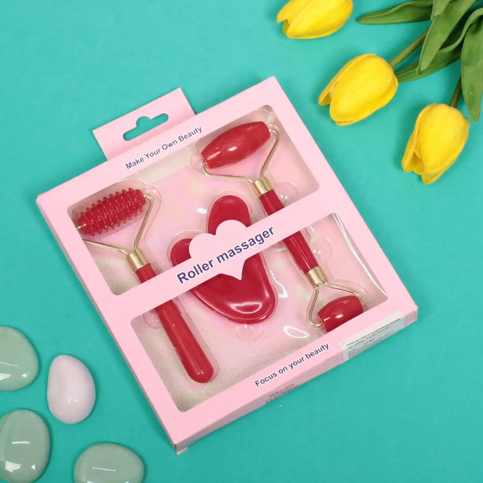 Набор включает в себя два ролика и массажер в форме сердца, что позволяет использовать его для различных техник массажа. Ролики имеют гладкую и ребристую поверхности, что дает возможность выбрать наиболее подходящий вариант для вашего типа кожи. Массажеры идеально подходят для домашнего использования и могут быть использованы как для лица, так и для шеи.