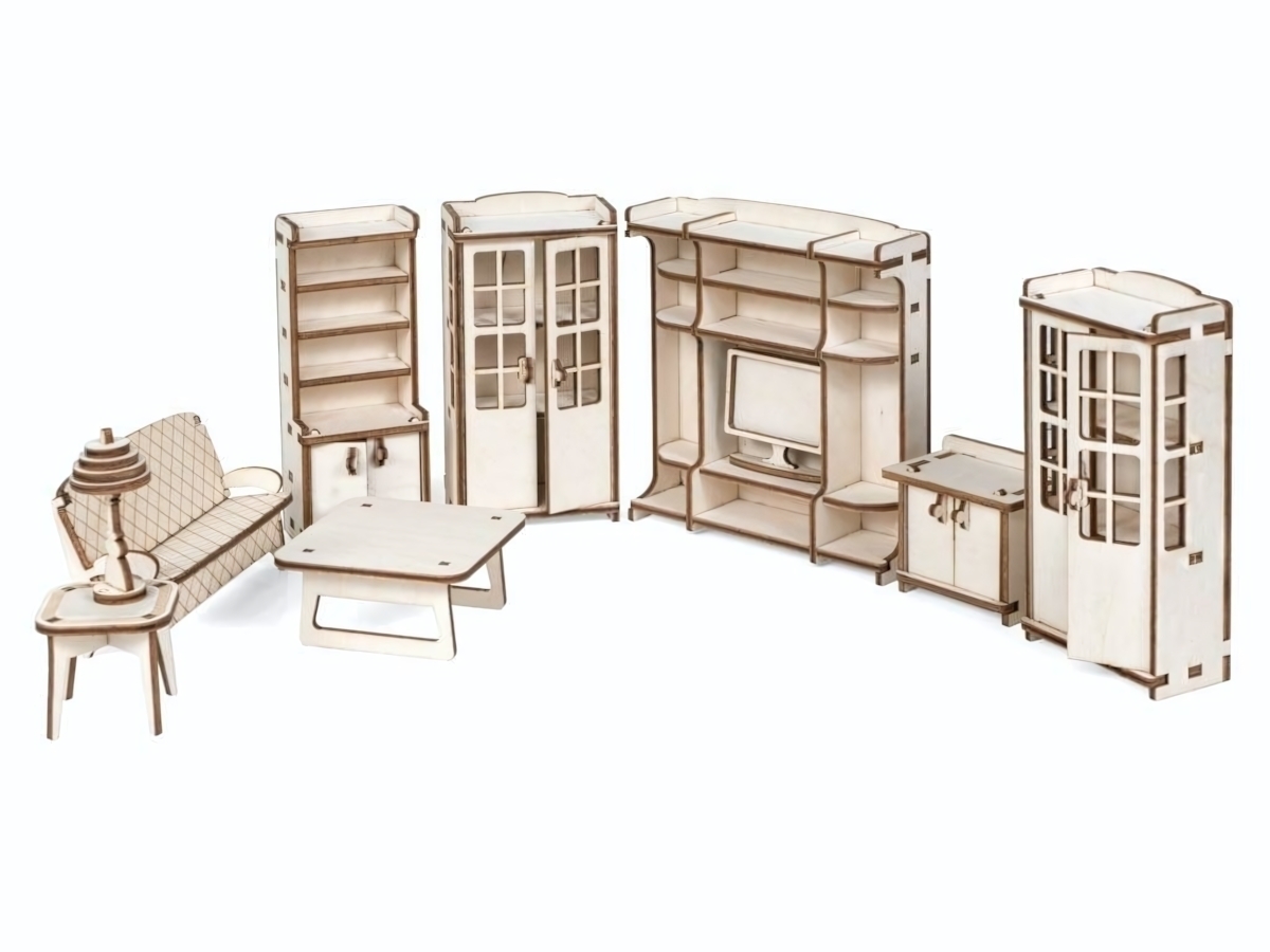 Погрузите ребенка в мир творчества и фантазии с набором деревянной мебели для кукольного дома. Каждая деталь создана из экологически чистой древесины, что гарантирует безопасность и долговечность использования.