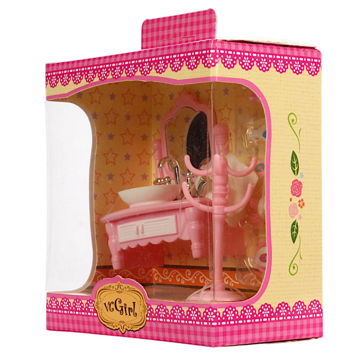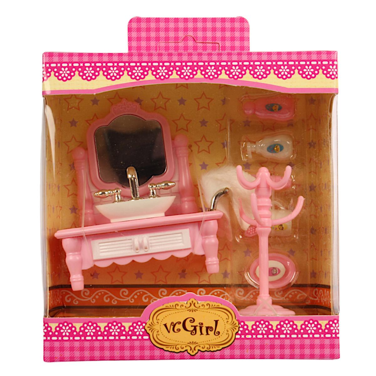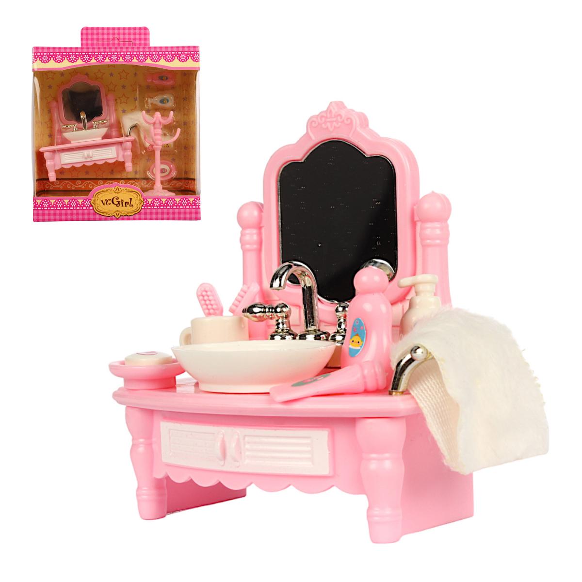 Набор мебели для кукол «VC Girl»: туалетный столик с зеркалом, раковина, вешалка, пластик, розовый