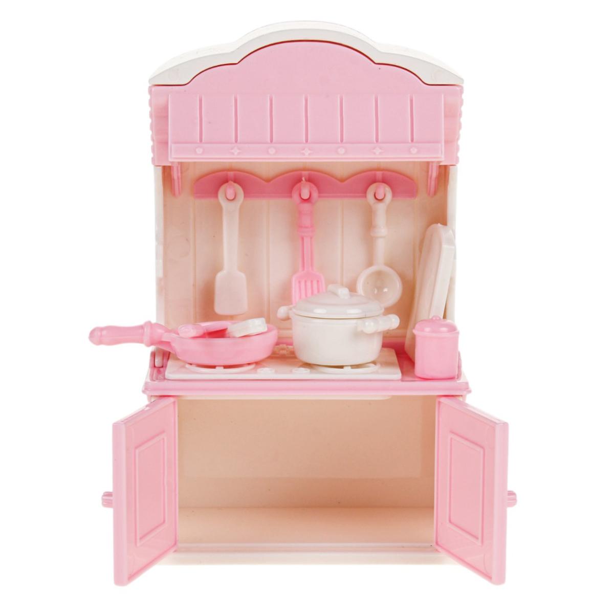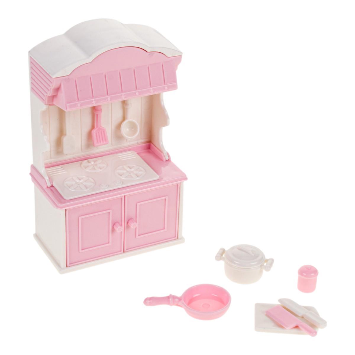 Игрушечный кухонный гарнитур для кукол VC016, 13,5×7,5×14,2 см, розово‑белый, пластик, развивает ролевую игру