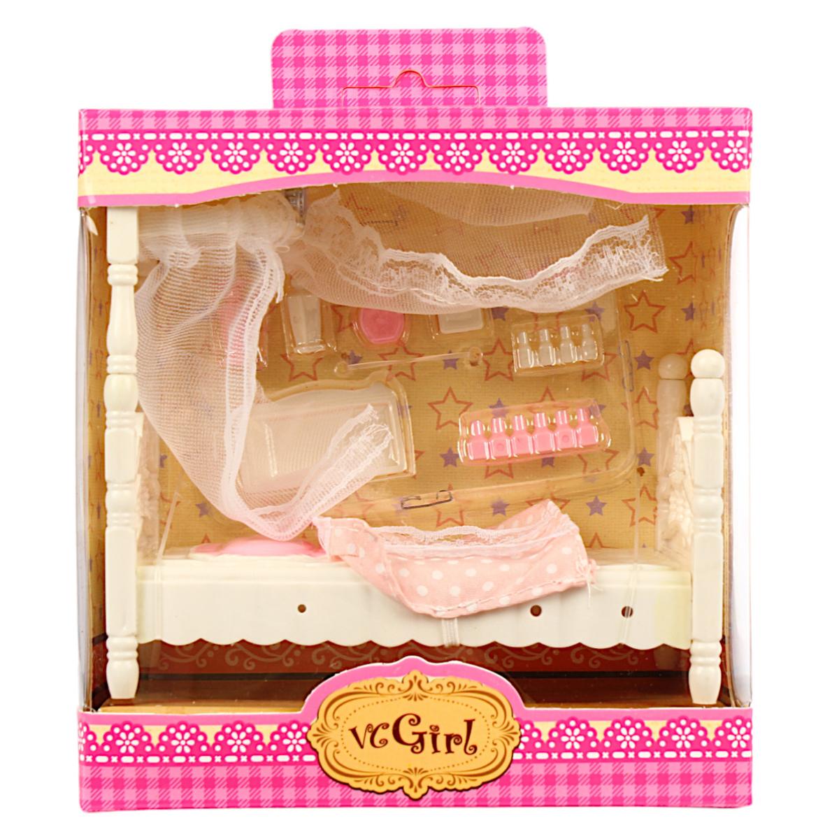 Игрушечная кровать для кукол с балдахином и аксессуарами, пластик, 10,5х6,5х12см