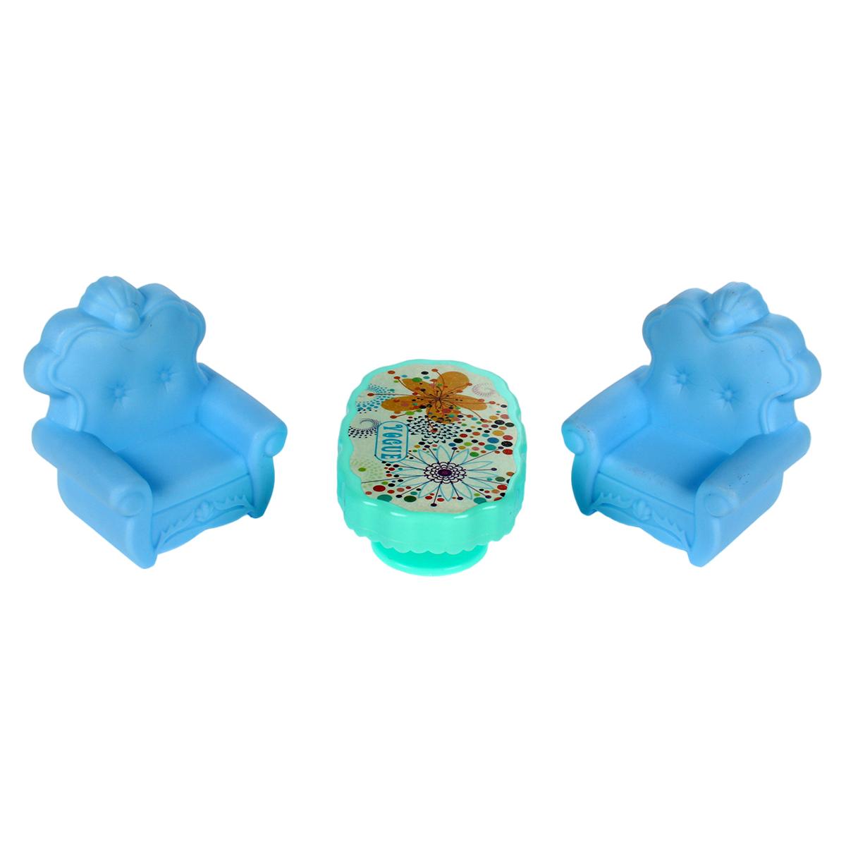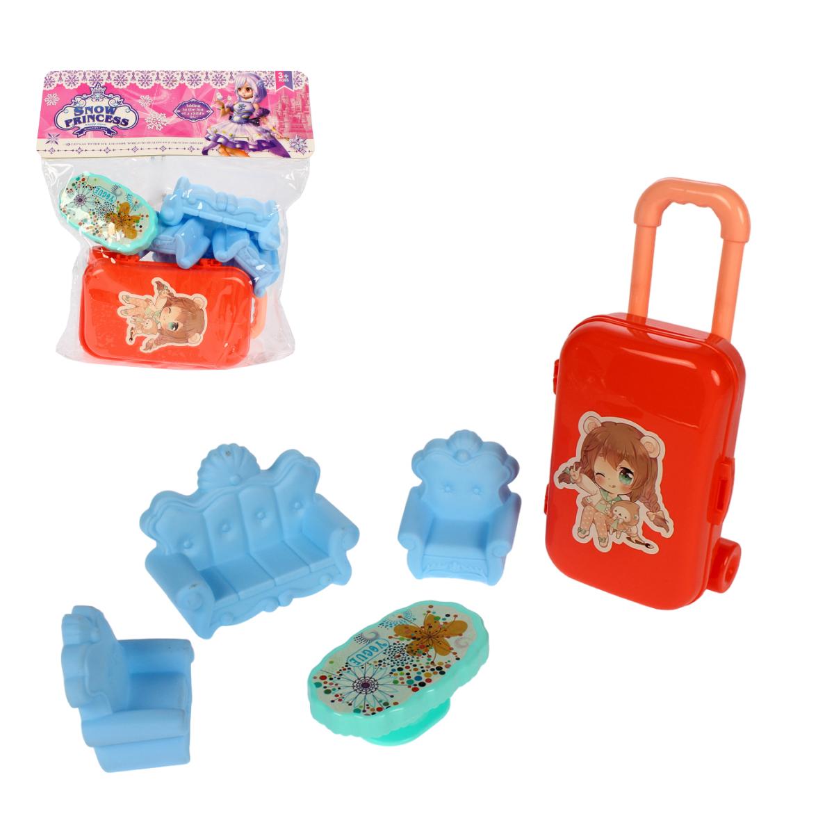 Набор мебели для кукол «Snow Princess» с чемоданом, диван, 2 кресла, стол, пластик, голубой/красный