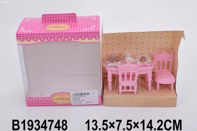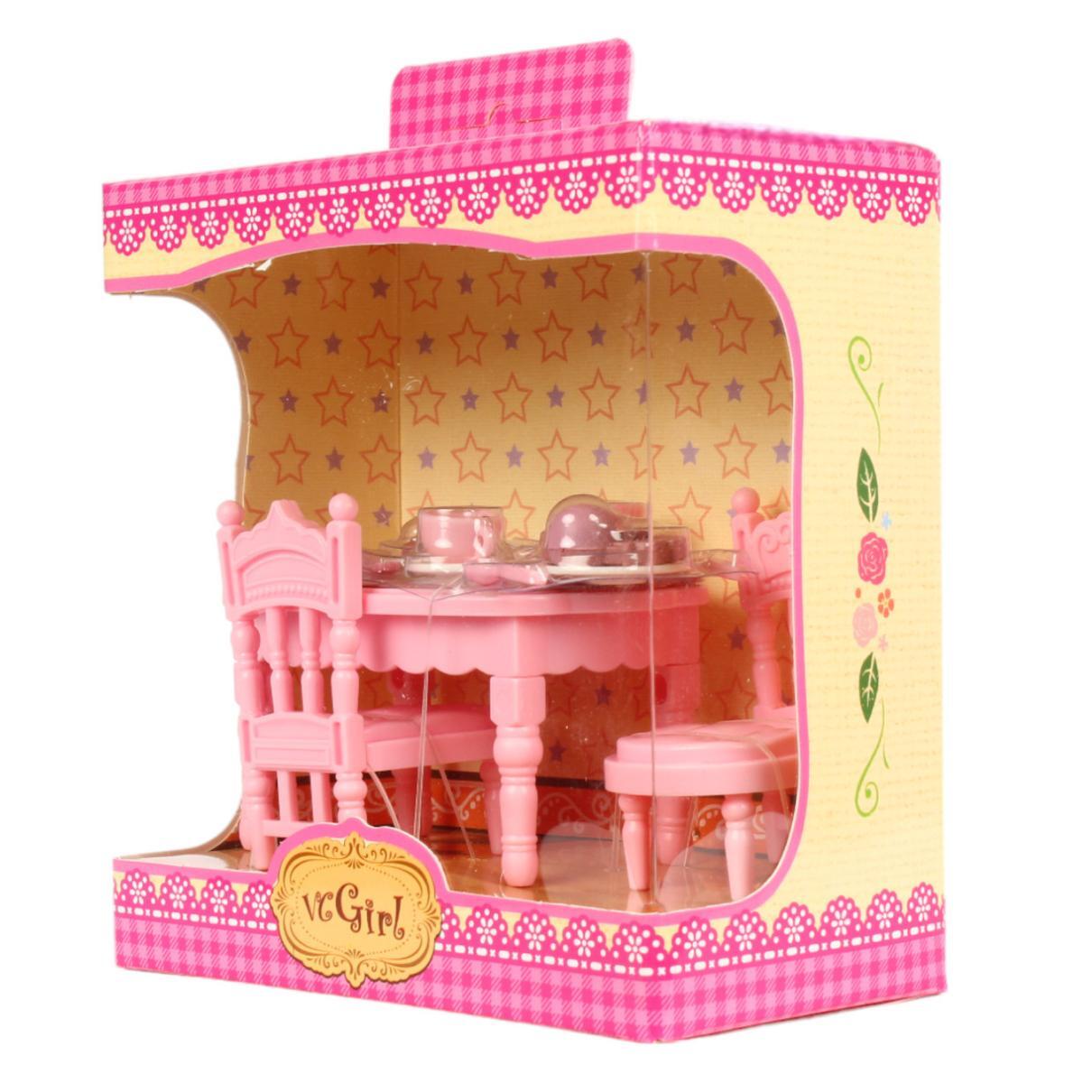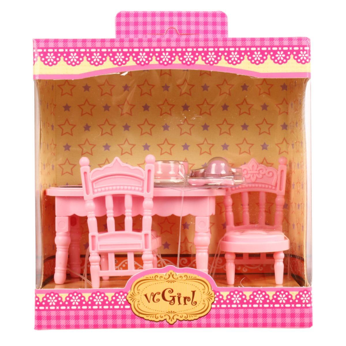 Подарите ребёнку возможность создать атмосферу уютного чаепития для любимых кукол с этим детализированным набором мебели. В комплект входят изящный стол с фигурными ножками, два стула с резными спинками и полный набор миниатюрной посуды. Яркий розовый цвет добавит играм тепла и радости, а прочный пластик обеспечит долговечность.