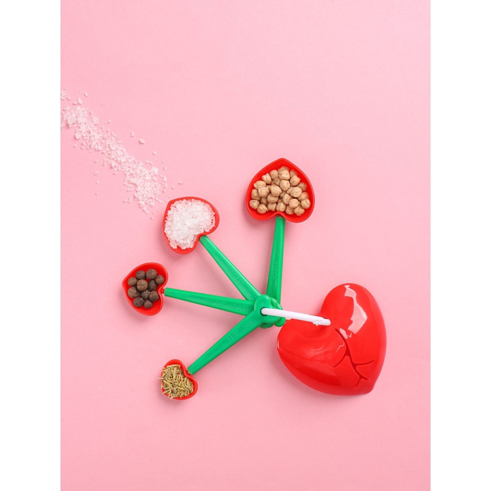 Набор состоит из четырех ложек, объем которых варьируется от 2,5 до 15 мл. Они идеально подходят для измерения как сыпучих, так и жидких ингредиентов. Ложки выполнены в форме сердечек, что делает их не только функциональными, но и стильными. Используйте их для приготовления пищи, выпечки или даже для спортивного питания и детских смесей.