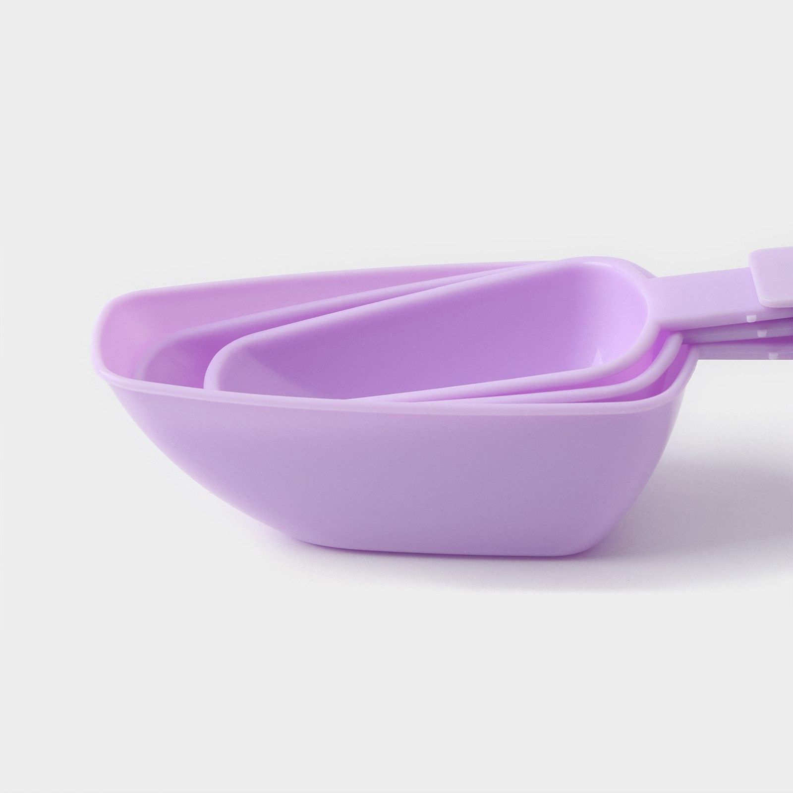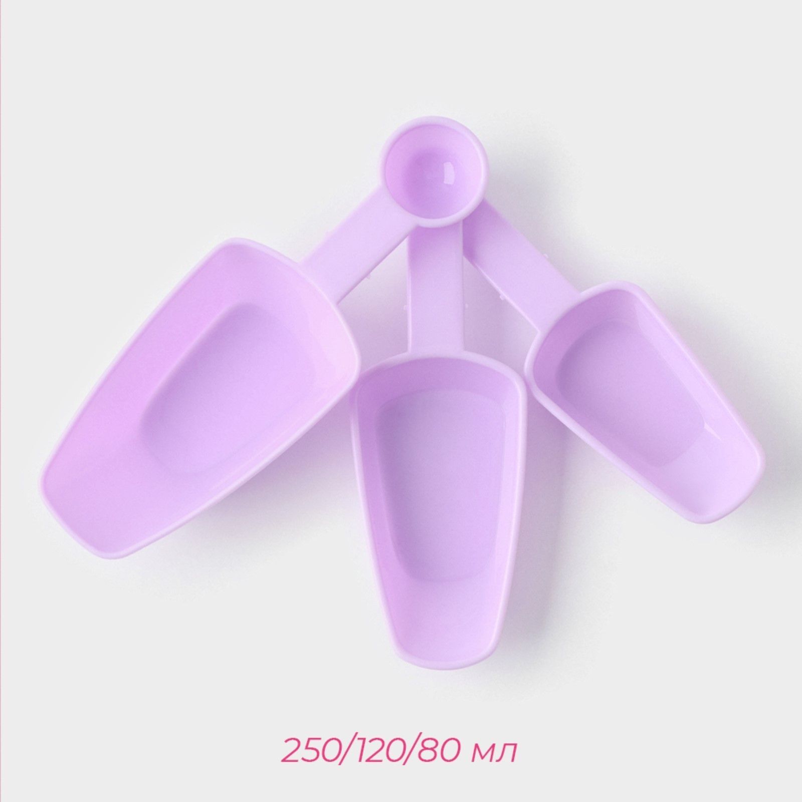 Ложки выполнены из прочного пластика светло-фиолетового цвета. Их форма обеспечивает удобство использования и легкость очистки. Удобные ручки позволяют комфортно держать ложки во время приготовления.