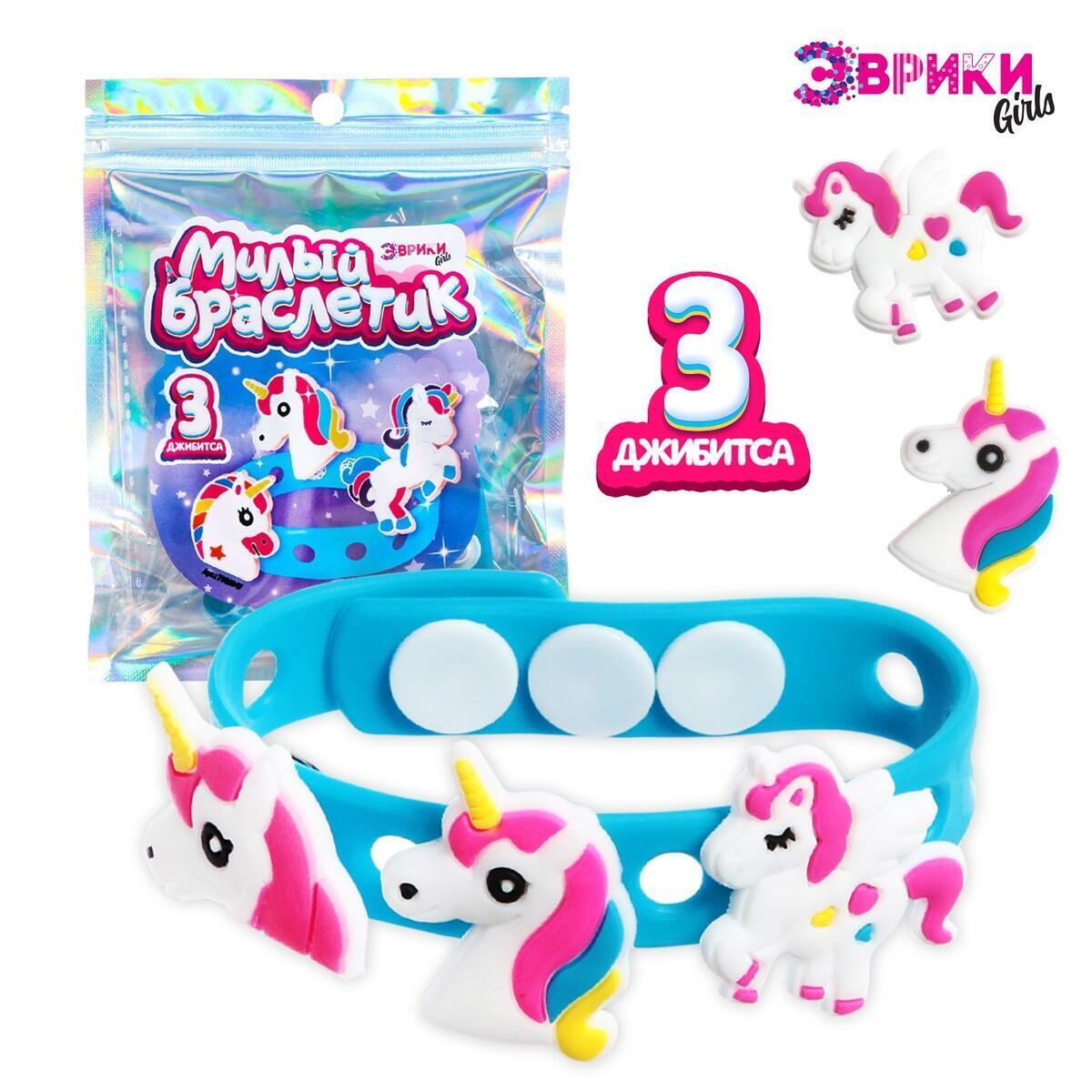 Создайте уникальный браслет с набором 'Милый браслетик', который подарит вам возможность проявить свою креативность и индивидуальность. Этот набор для творчества станет отличным подарком для детей и взрослых, которые любят рукоделие и оригинальные аксессуары. Браслет выполнен в нежном голубом цвете и украшен тремя яркими джибитсами в виде единорогов, что добавляет ему игривости и очарования.