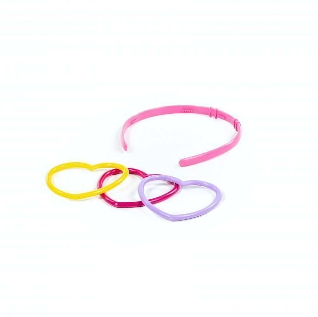 Этот набор предназначен для юных девочек от 3 лет, которые любят играть в салон красоты и создают уникальные прически и украшения. В набор входит обруч для волос, выполненный из яркого розового пластика, и 3 цветных браслета с формой сердца, что делает игру захватывающей и стимулирует воображение.