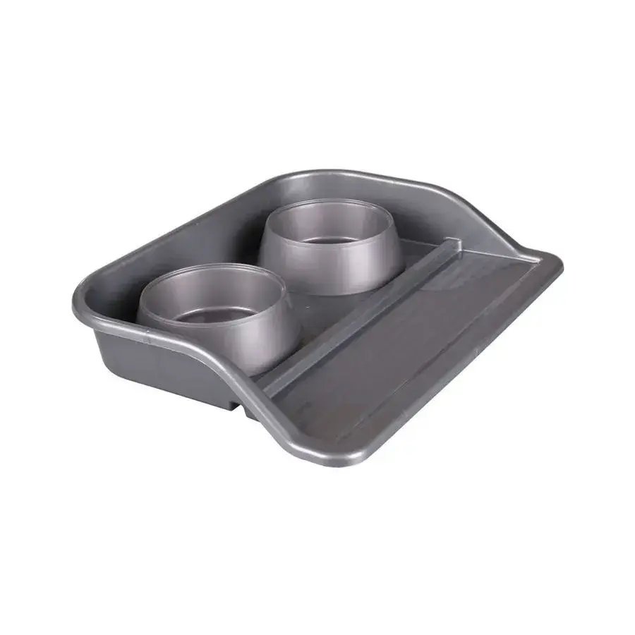 Лоток-органайзер с бортиками надёжно фиксирует миски, предотвращая опрокидывание. Каждая ёмкость объёмом 0,3 л подходит для сухого корма, воды или влажных продуктов. Универсальная конструкция позволяет использовать набор как в помещении, так и на улице.