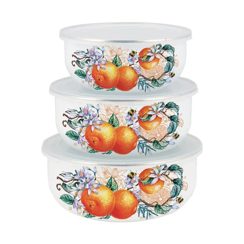 Набор из трех герметичных контейнеров с крышками создан для тех, кто ценит порядок и стиль. Яркий дизайн с сочными апельсинами и цветочными мотивами превратит обычное хранение продуктов в элемент декора.