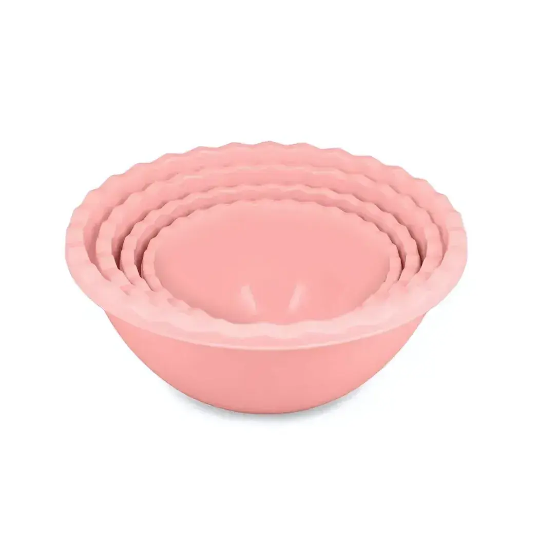 Этот комплект включает четыре миски разных размеров, идеально подходящих для хранения, приготовления и сервировки блюд. Каждая миска выполнена из качественного пластика и имеет волнистый край, что делает их не только практичными, но и эстетичными. Миски легко вставляются друг в друга, что облегчает хранение и экономит пространство.
