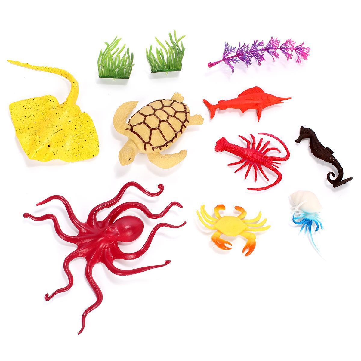 В набор входят: черепаха, скат, рак, морской конек, осьминог, краб, медуза и рыба, а также декоративные водоросли.