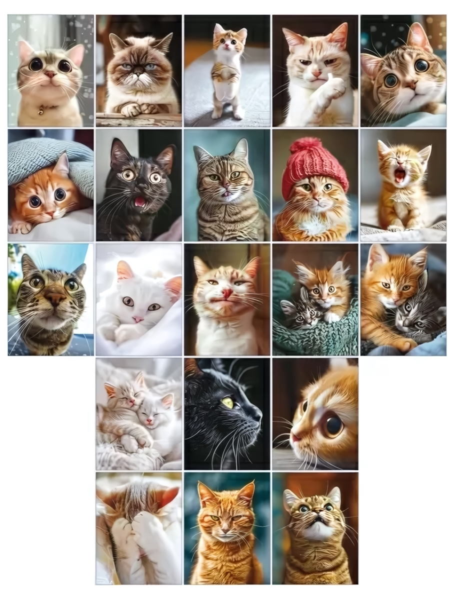 Яркая наклейка формата А7 с милыми изображениями кошек станет отличным украшением для ежедневников, писем, открыток, упаковки подарков или личных вещей. Каждое изображение — это выразительный портрет кошки с индивидуальным характером: от игривых рыжих, добродушных полосатых до благородных черных и белых пушистиков.