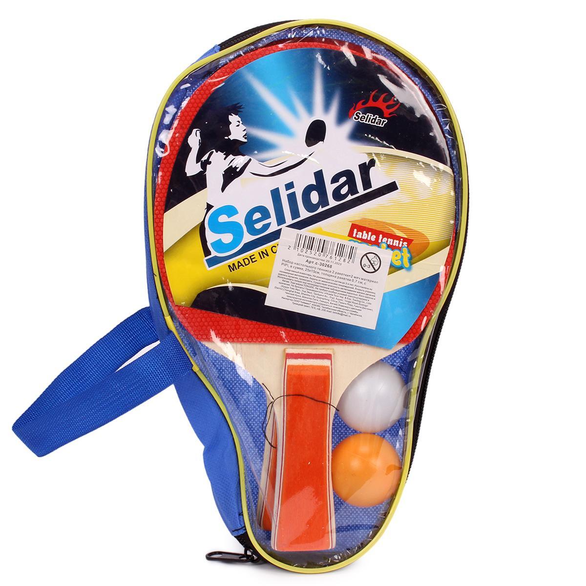 Набор для настольного тенниса, 2 ракетки+3 мяча, в сумке, 25х15см