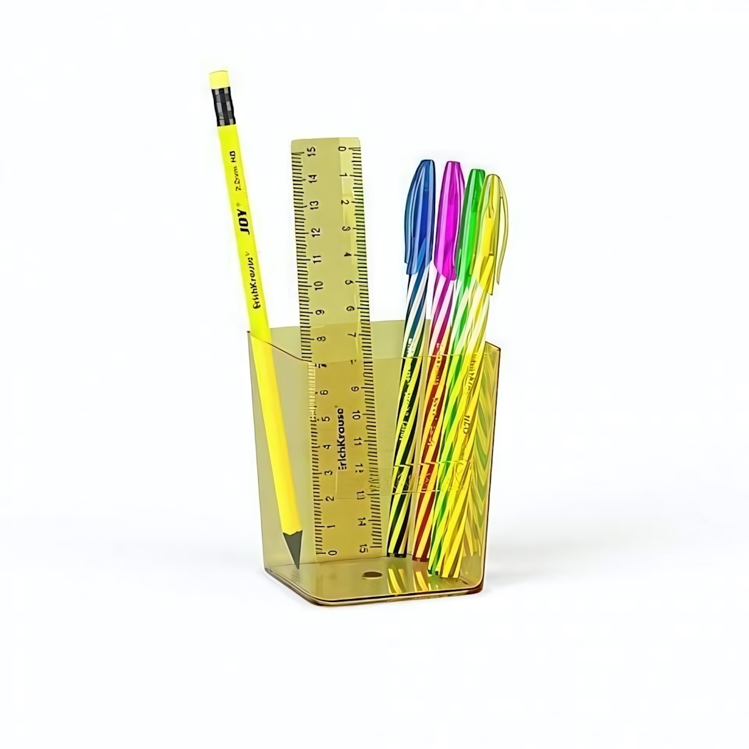 Универсальное решение для дома и офиса — подставка вмещает стандартные ручки, маркеры и кисти. Матовая поверхность не оставляет отпечатков, а закругленные края предотвращают повреждение стола. Яркий желтый цвет создаёт позитивный акцент в интерьере.
