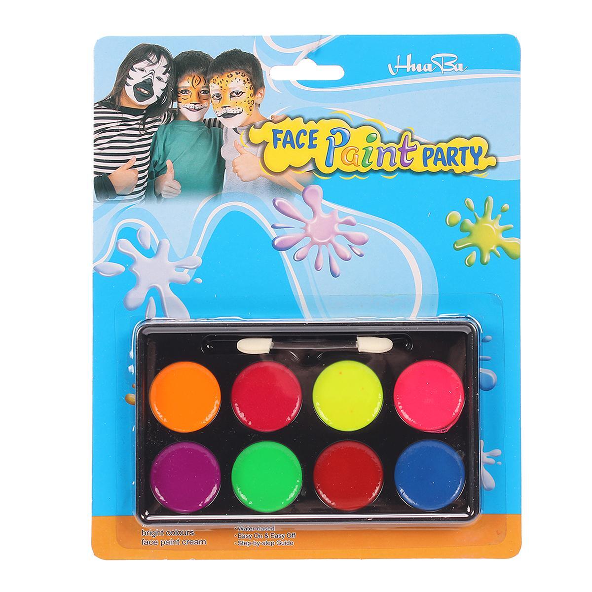 Набор включает 8 ярких неоновых цветов, которые легко наносятся на кожу и также легко смываются с помощью воды и мыла. Он идеально подходит для детских праздников, карнавальных мероприятий, театральных постановок и других творческих активностей. Краски могут использоваться как с аппликатором, так и с кистью или спонжем, что делает их универсальными для любого уровня мастерства.