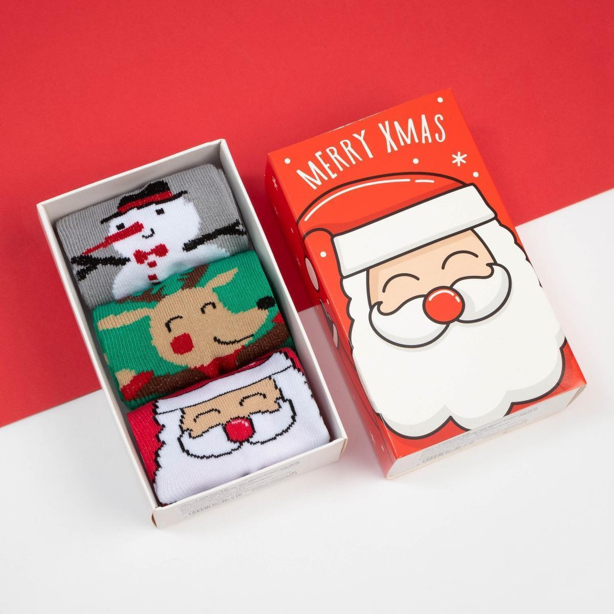 Набор носков детских "Дед Мороз", 3 пары, размер 14-16, праздничные новогодние
