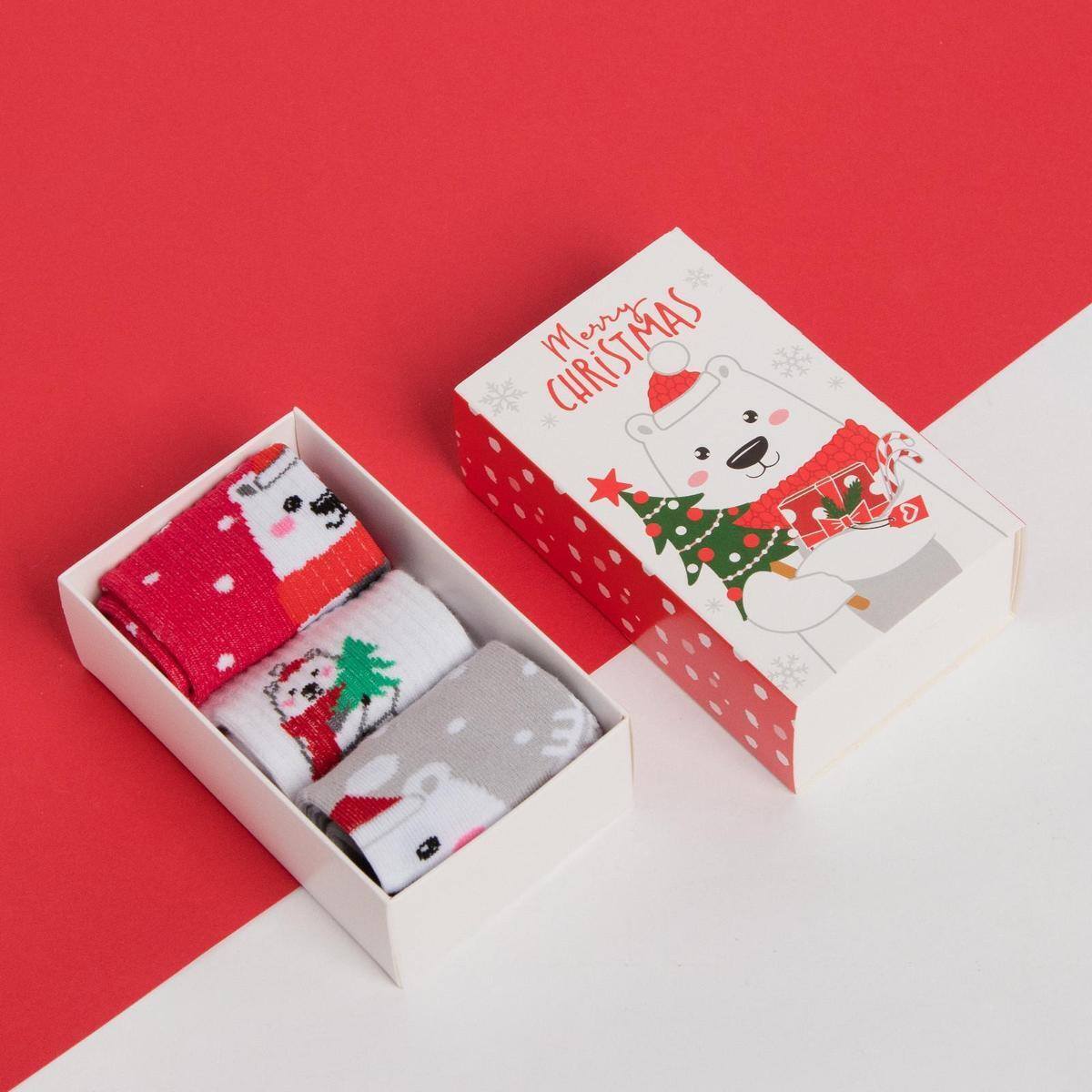 Носки детские Kaftan "Мишка", 3 пары, новогодние, размер 14-16, хлопок