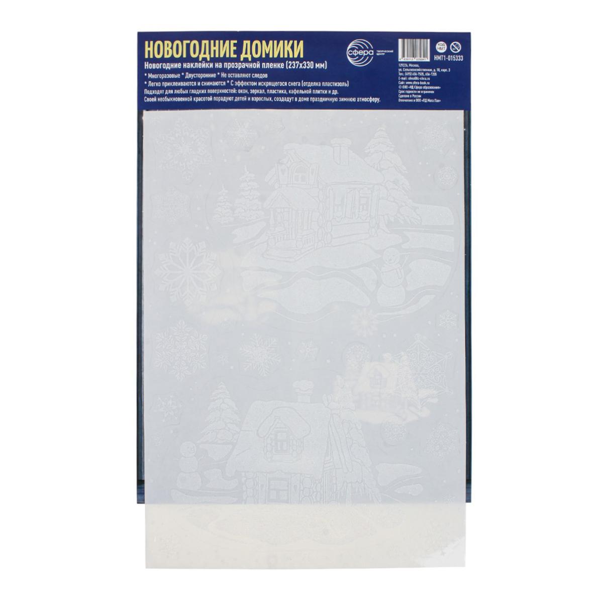 Размер наклейки — 330х237 мм, формат А4+. Цвет — белый, универсальный для любых интерьеров. Отгружается один товар, оформление определяется серией "Новогодние домики".