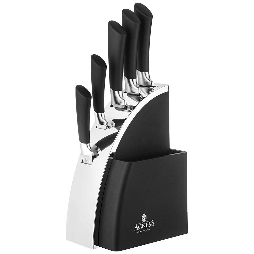 В набор входят 6 предметов, каждый из которых выполнен из нержавеющей стали. Подставка имеет черный цвет и современный дизайн, что делает ее стильным дополнением к любому интерьеру. Упаковка выполнена в картонной коробке, что делает набор отличным подарком для любителей кулинарии.