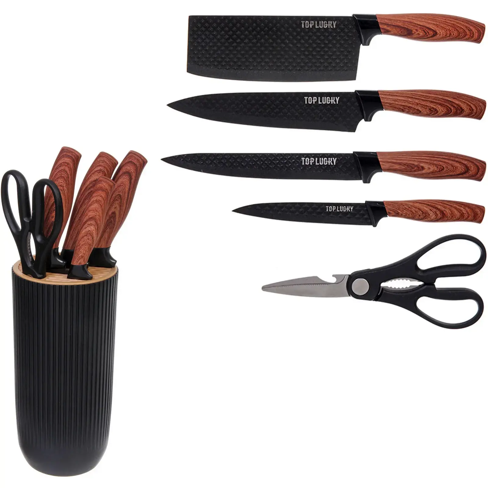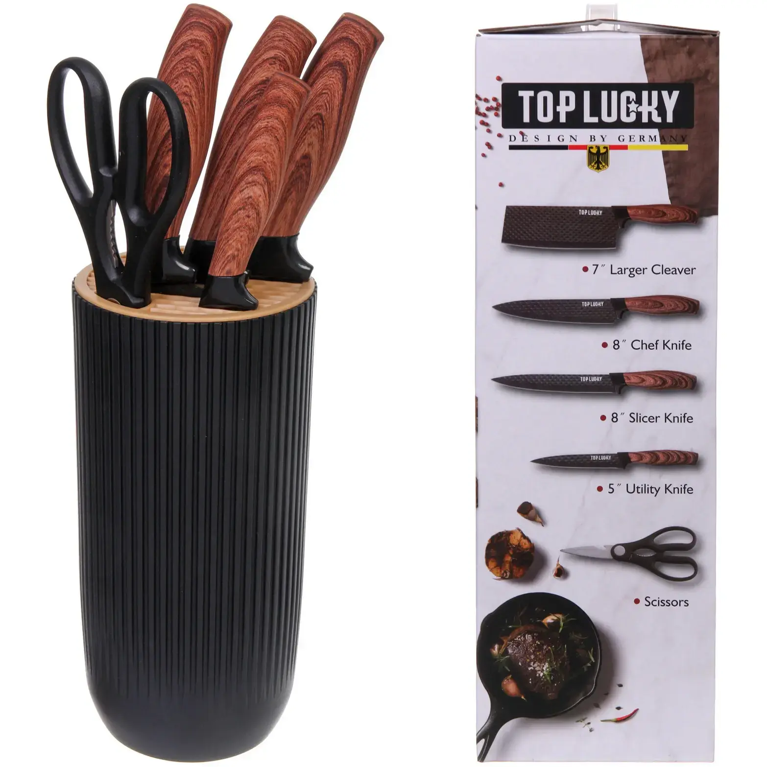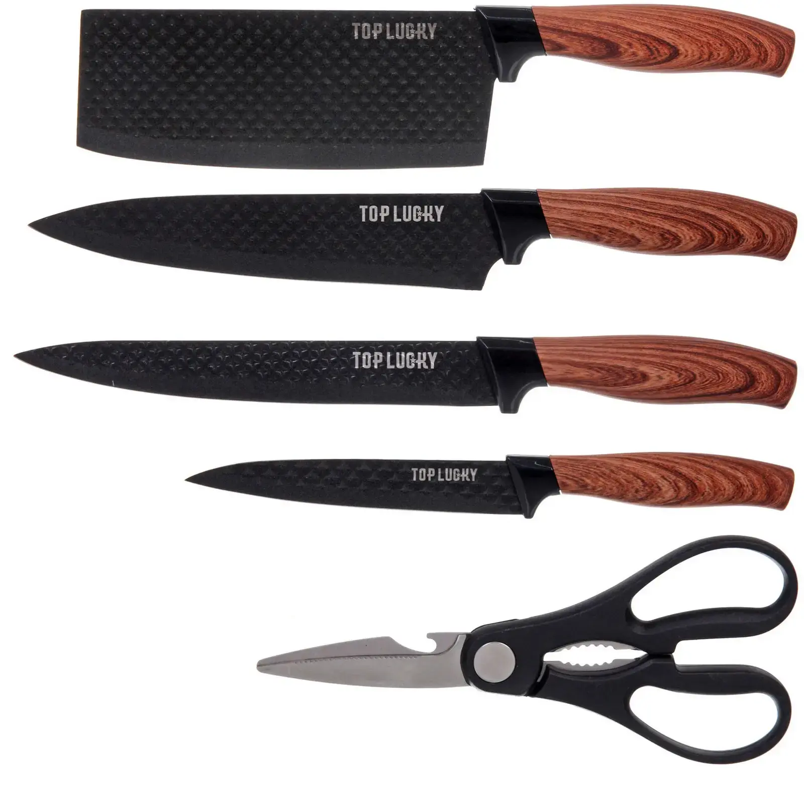 С набором ножей «TOP LUCKY» вы сможете готовить с удовольствием и легкостью, а его стильный дизайн станет украшением вашей кухни.