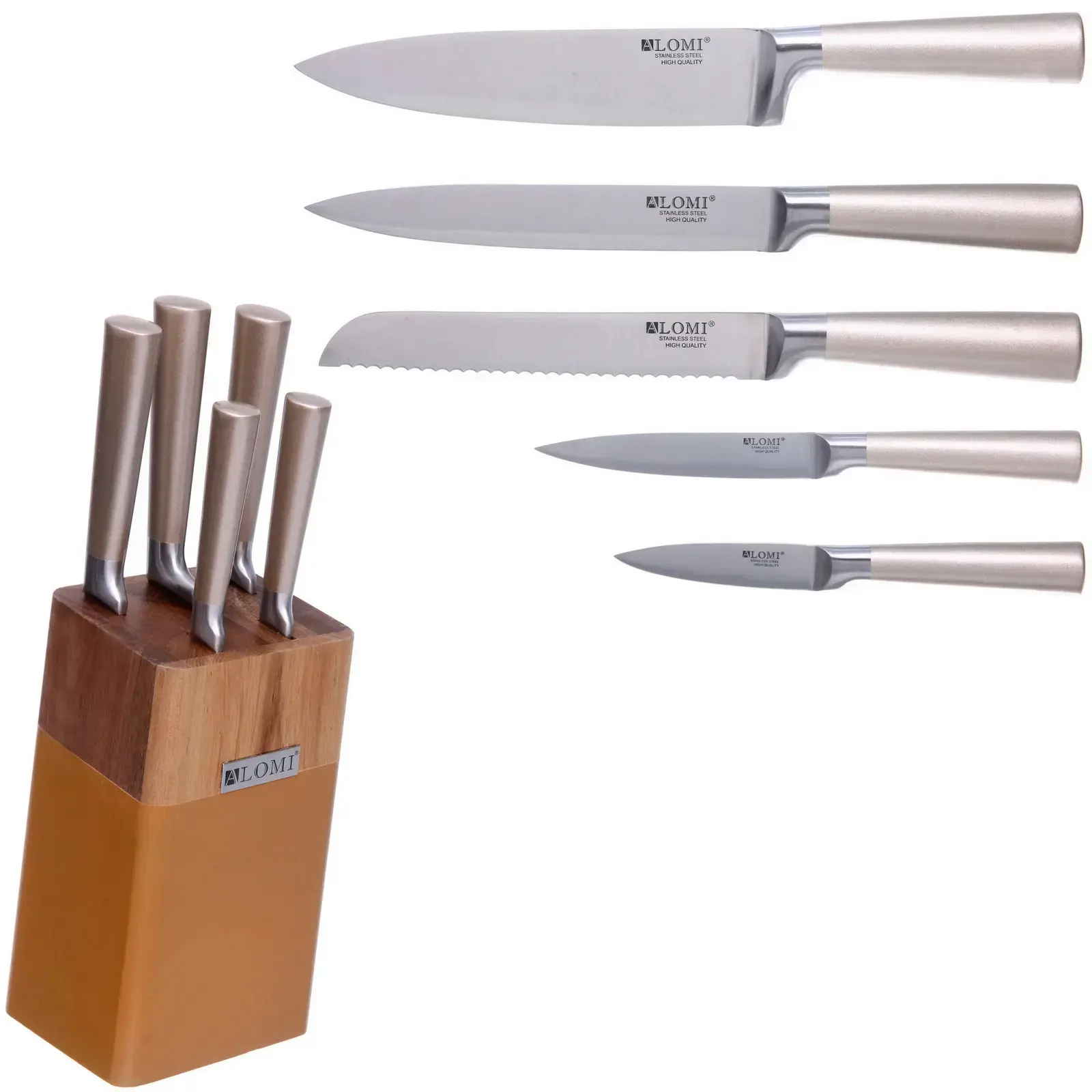 Набор ножей 'SHEF' 6 предметов, сталь/дерево, золотистые ручки