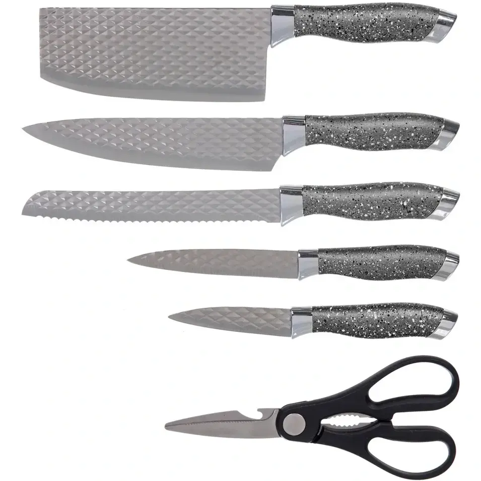 Этот набор ножей «SHEF» состоит из 7 предметов, включая 5 ножей и ножницы, что делает его незаменимым инструментом для приготовления блюд. Каждый нож в наборе предназначен для выполнения определенных задач, что обеспечивает максимальную эффективность и удобство в процессе нарезки. С набором «SHEF» вы сможете легко и быстро готовить любимые блюда, не тратя время на поиск нужного инструмента.