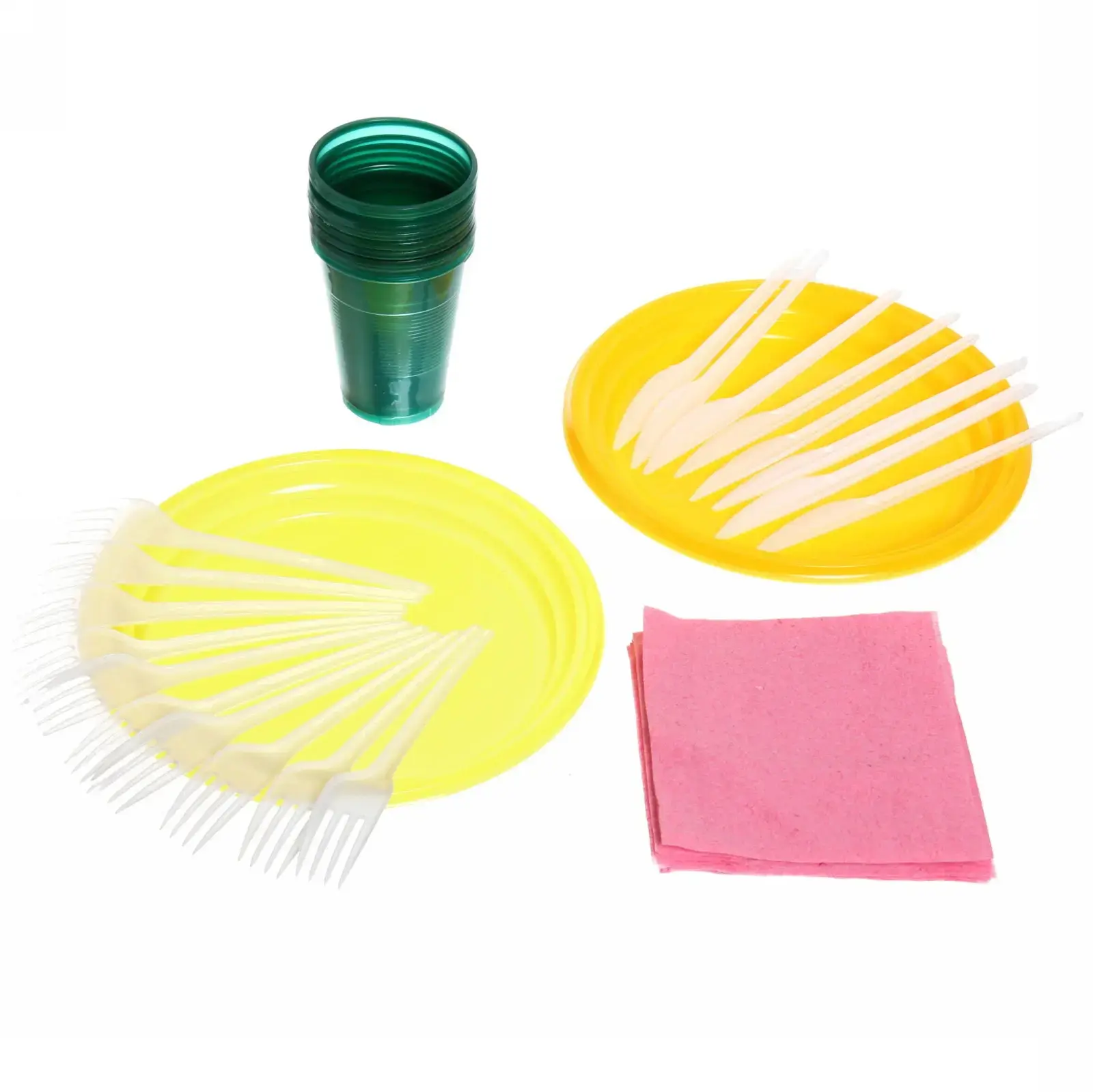 Набор посуды 'Пикник' на 10 персон, тарелка 20.5см, стакан 0.2л, вилка, нож, салфетки
