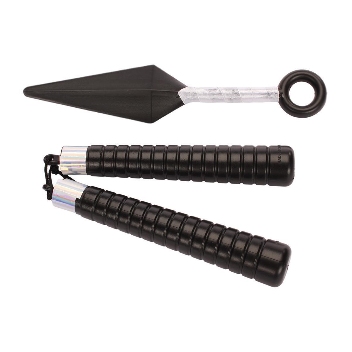 Этот комплект включает нунчаки и кунай, выполненные из прочного пластика, что обеспечивает безопасность и долговечность во время игр.
