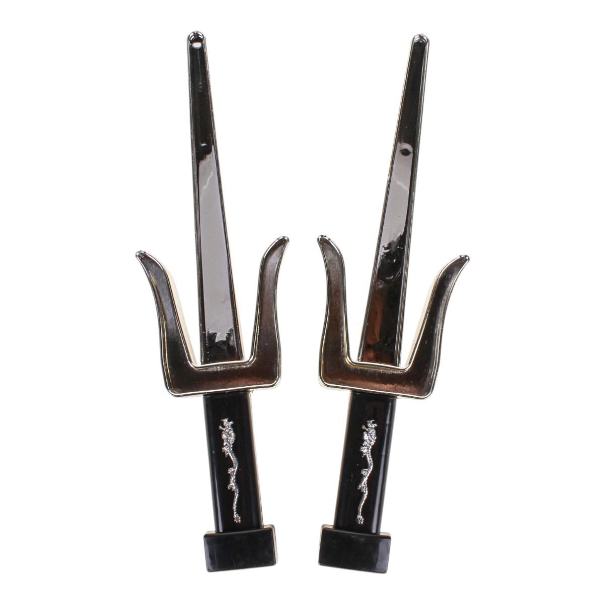 - Два сая – короткие трёхзубые кинжалы с серебристыми клинками и эргономичными рукоятями. Идеальны для скрытого ношения и метания.