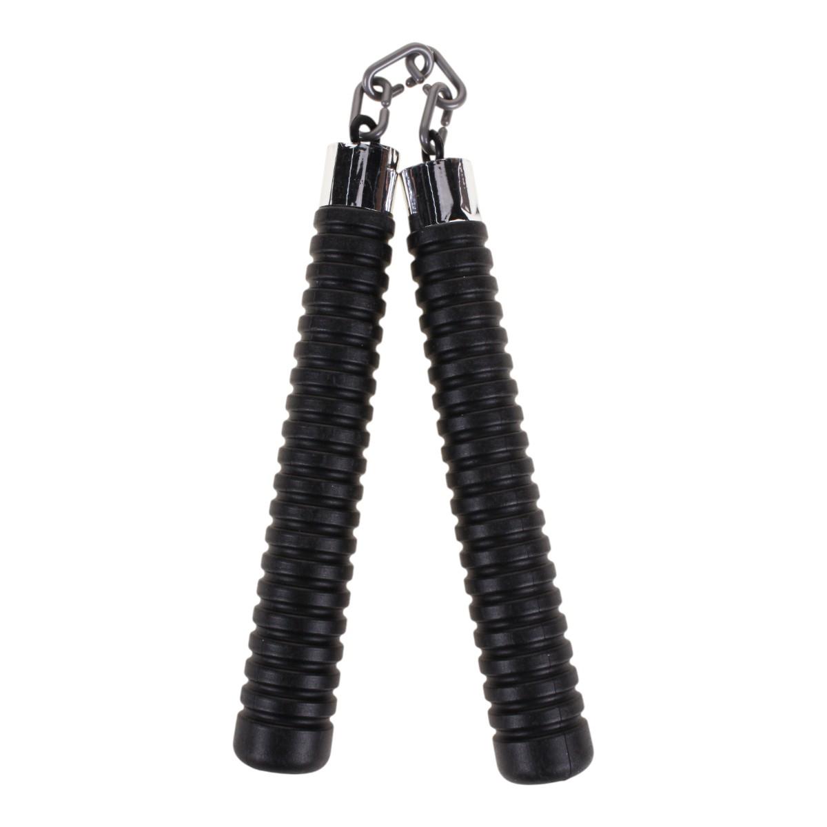 - Нунчаки – классическое оружие из двух рифлёных рукоятей, соединённых цепочкой. Тренируют координацию и чувство ритма.