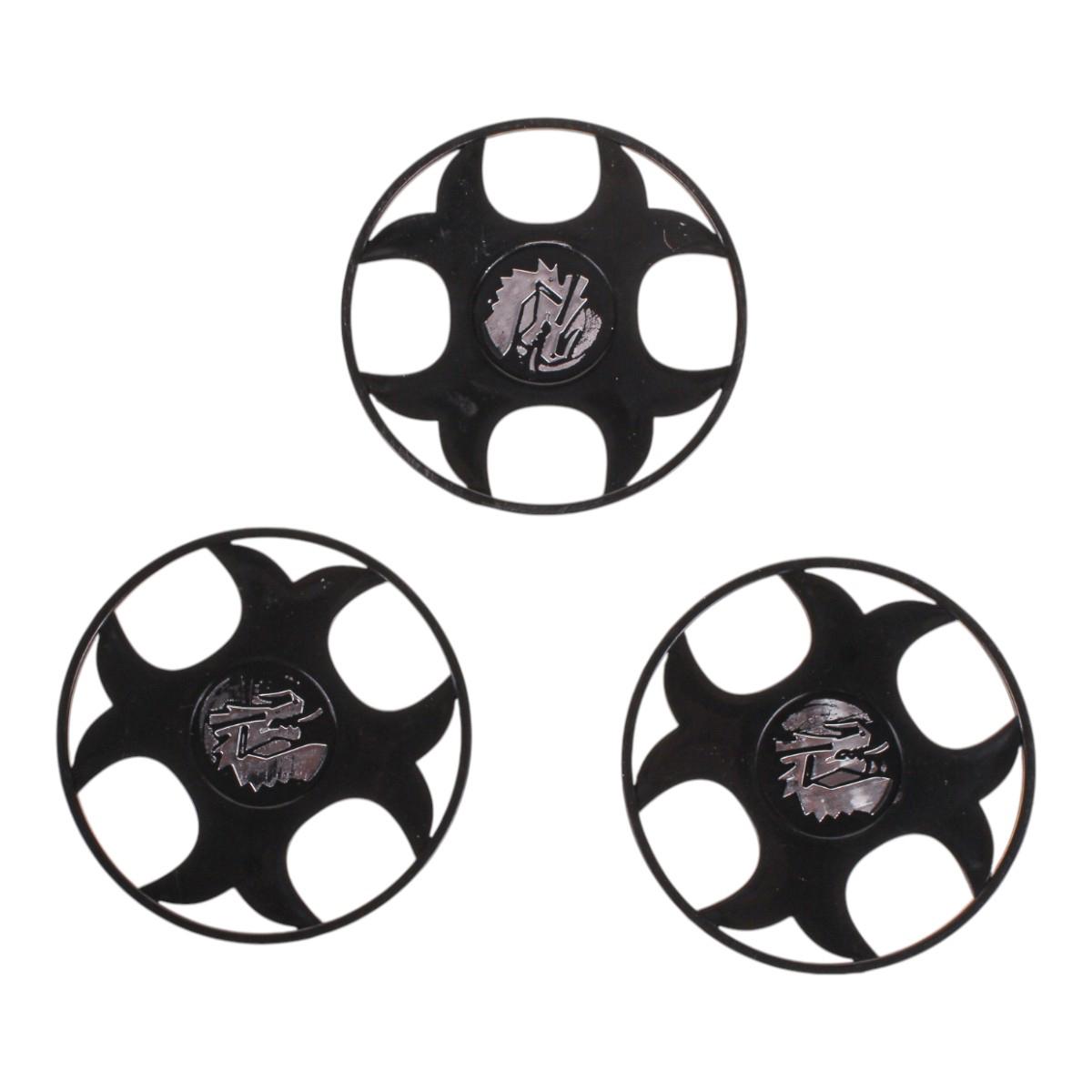 - Три сюрикена – метательные звёзды с аутентичным дизайном, четырьмя отверстиями и символами в центре. Развивают меткость и глазомер.