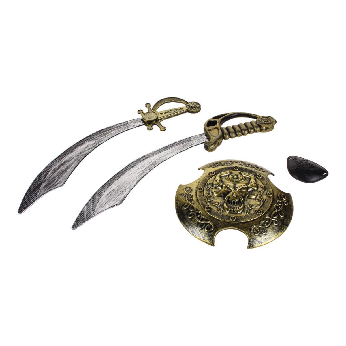Все элементы выполнены из прочного пластика, имеют декоративное покрытие под металл и безопасны для детей. Яркий дизайн и аккуратная отделка создают атмосферу реалистичной морской атрибутики. Комплект отлично подходит для сюжетно-ролевых игр, развивая фантазию, воображение и коммуникационные навыки ребёнка.