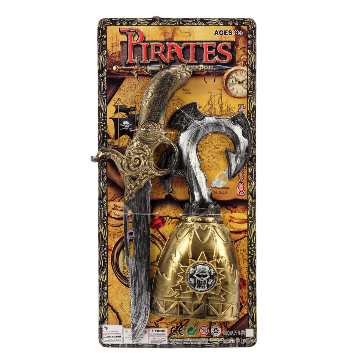 Этот игровой набор создан для того, чтобы подарить детям яркие приключения и развивать воображение. В комплект входит стильный меч, крюк и пистолет, выполненные из безопасного пластика, диаметром и длиной, оптимальными для юных любителей пиратских игр.