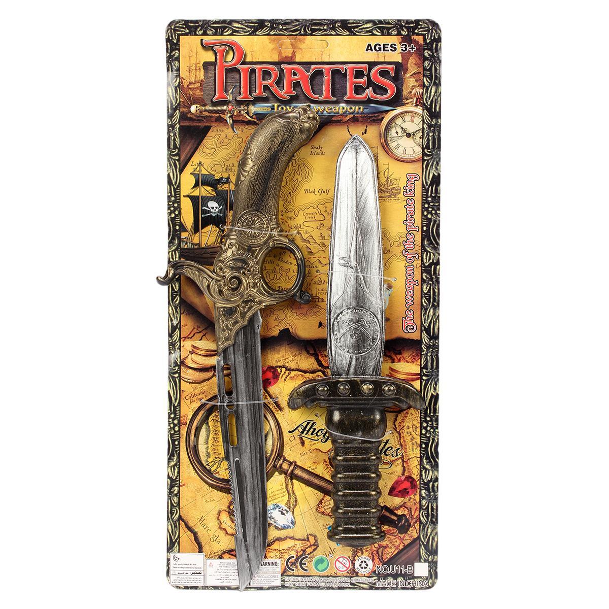 Этот пиратский набор оружия станет отличным дополнением к детским играм и костюмам, позволяя вашим детям разыгрывать яркие сценки и погружаться в фантазийные приключения. В комплект входит пистолет и два меча, изготовленные из безопасного пластика, украшенные декоративными элементами, имитирующими настоящее оружие, и идеально подходящие для игр на улице или дома.