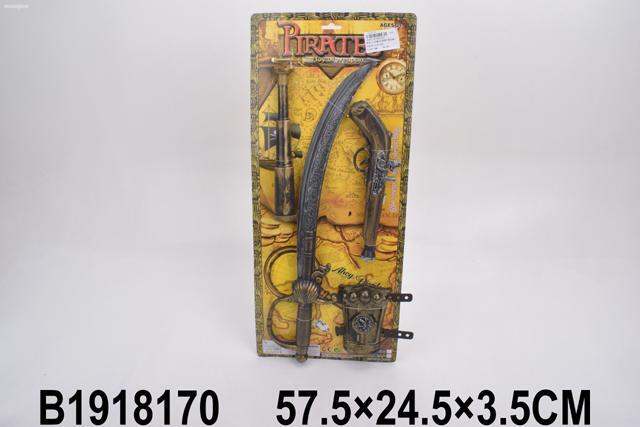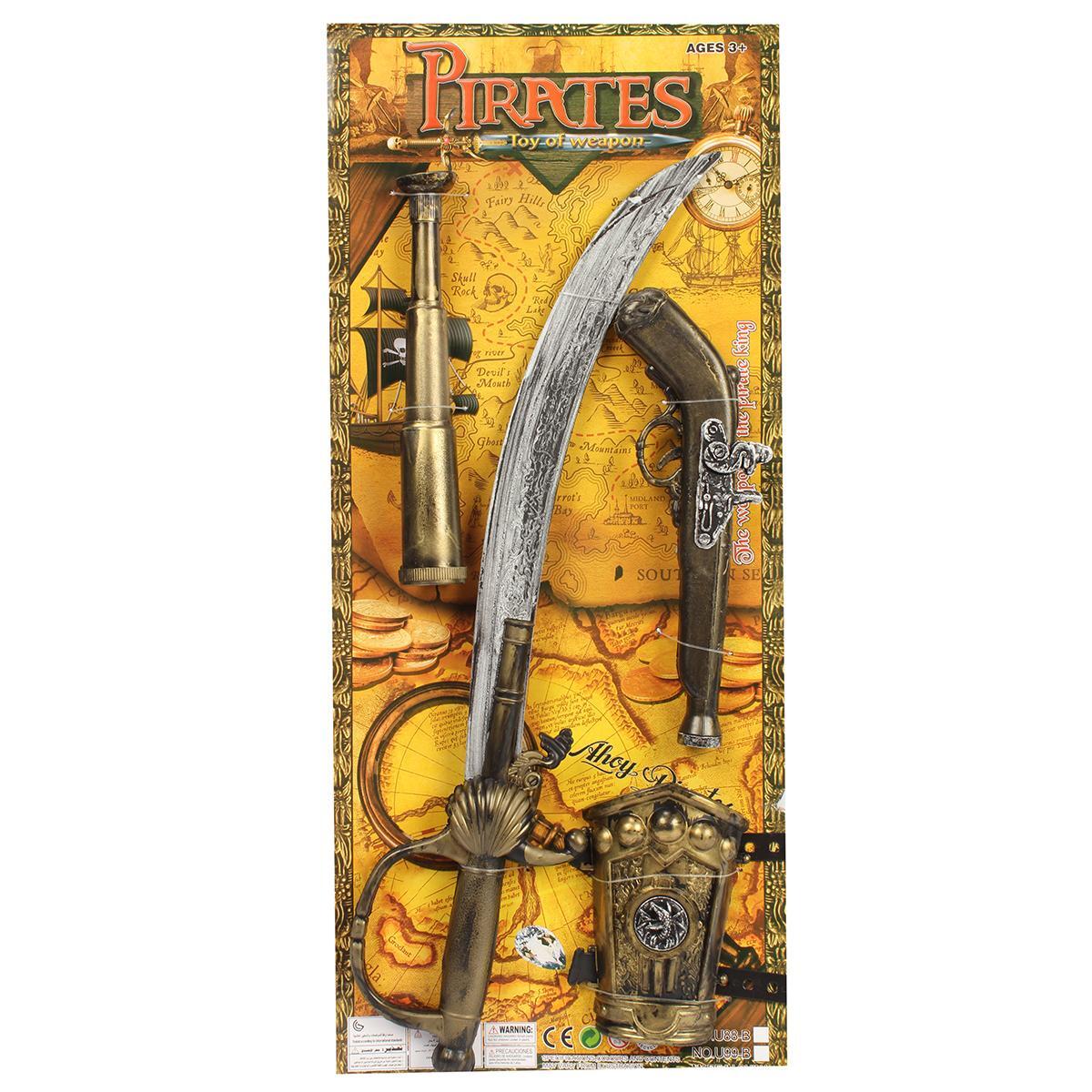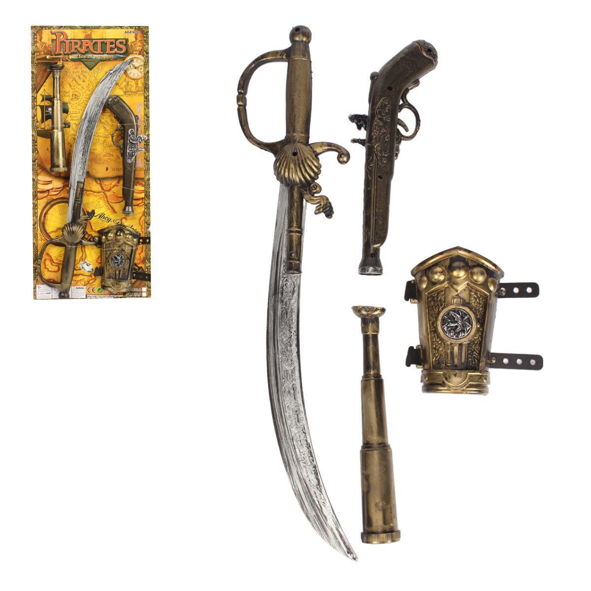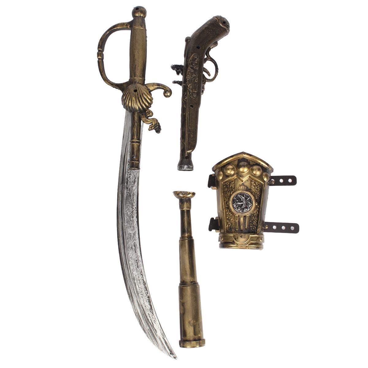 Этот игровой набор из 4 предметов — меч, пистолет, подзорная труба и подсумок — позволит вашему ребенку погрузиться в увлекательный мир пиратов и фантазий. Создан из безопасного пластика, он подходит для активных игр дома и на улице, развивая воображение и моторику.