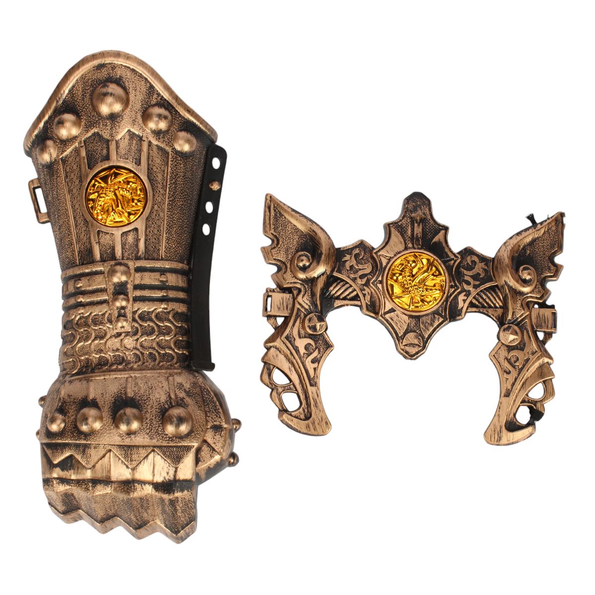 Функциональность: комплект включает элементы, имитирующие оружие и доспехи, выполненные из безопасного пластика, что обеспечивает комфорт и безопасность во время игры. Размеры и дизайн позволяют ребенку легко надевать и использовать их в роли рыцаря или героя.